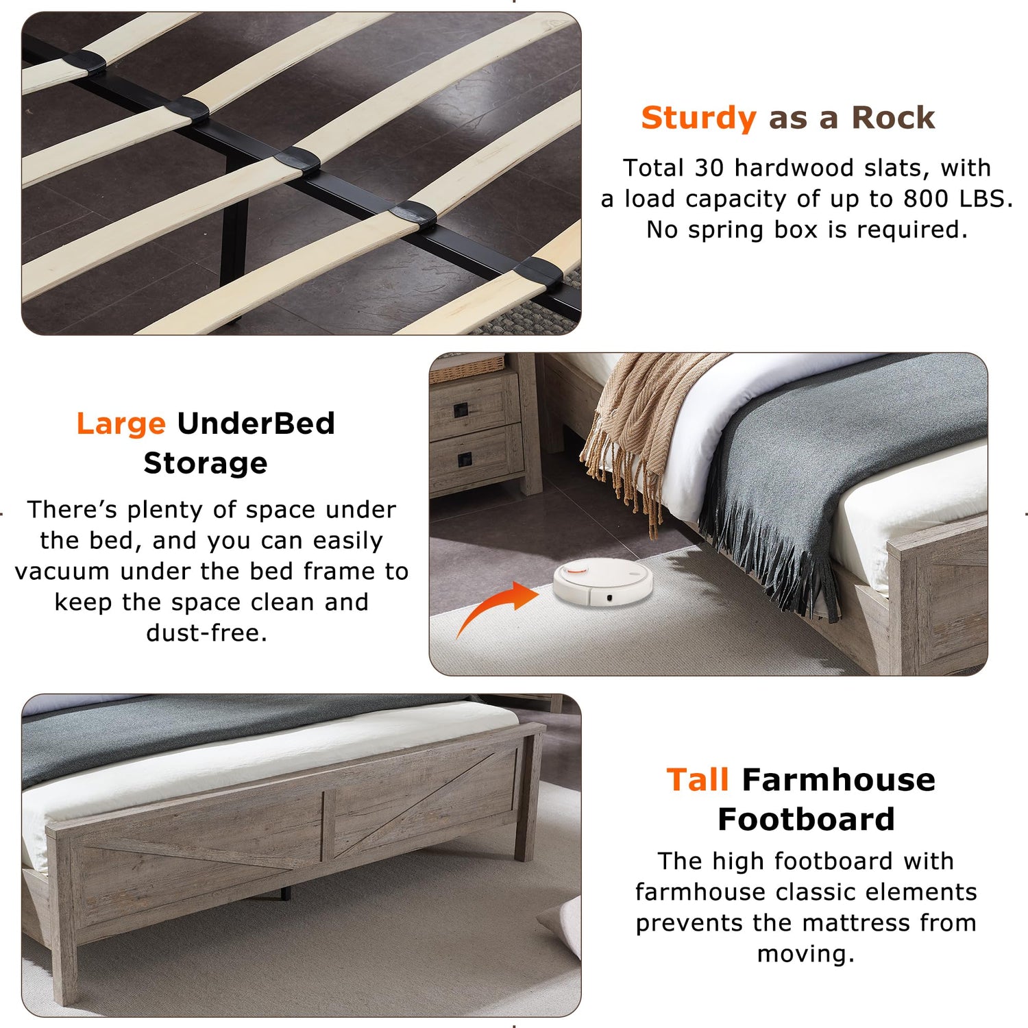 Constructed with a robust wooden silhouette and complemented by thick metal pilasters, the T4TREAM bed frame provides a sturdy and stylish foundation. It is equipped with 30 short hardwood slats and a newly upgraded frame joint locking system, ensuring both strength and easy assembly, with a load capacity of up to 800LBS. Importantly, there is no need for a spring box.
