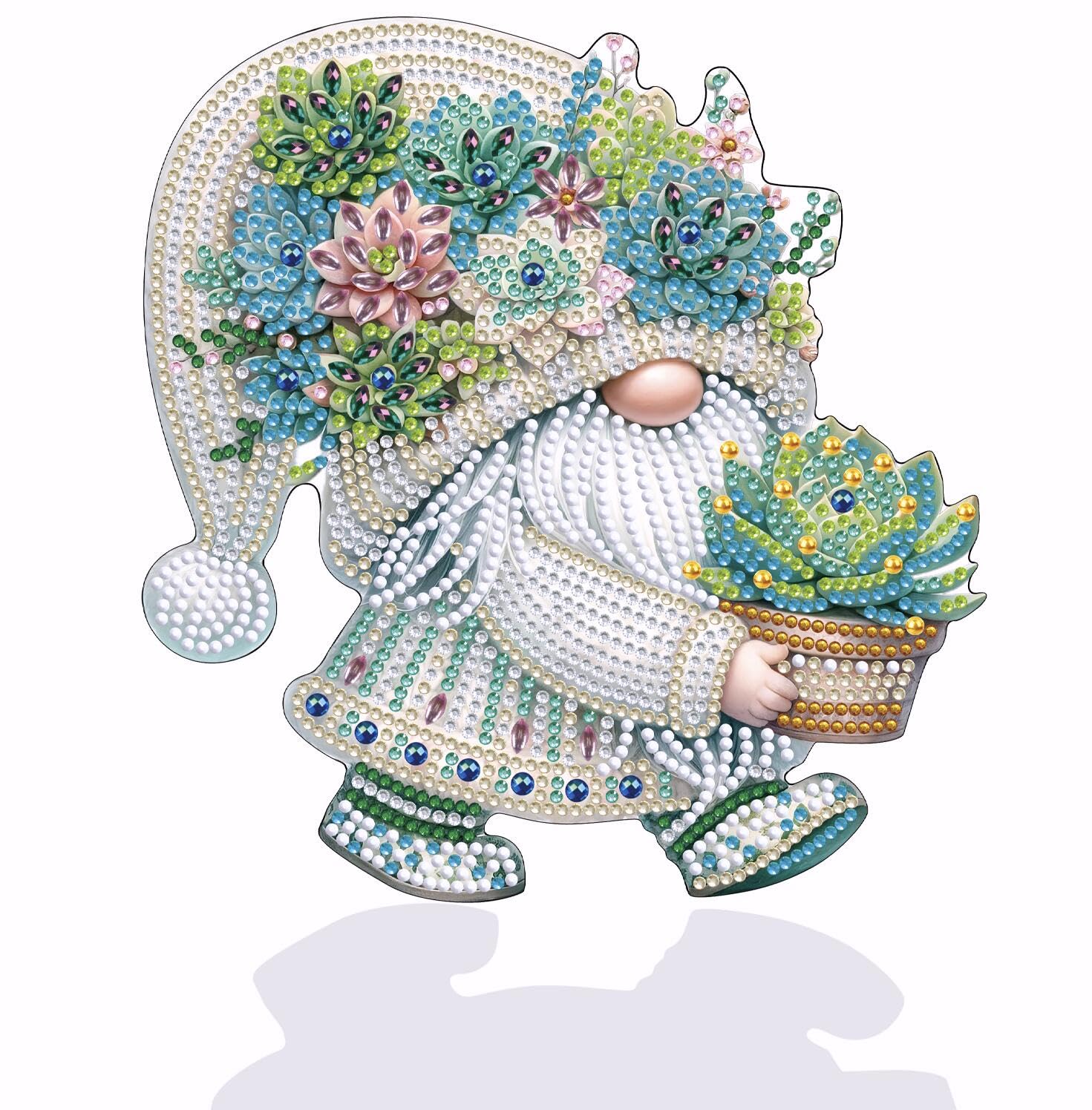 Tabletop Diamond Art Kits for Adults - Succulents Gnome Diamond Painting Figurines Ornaments, DIY Diamond Art Statues Diamond Dots Sculpture Special Shaped Paintings with Diamonds Gem Art and Crafts