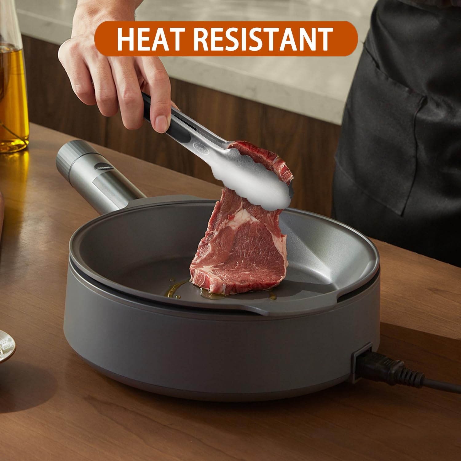 - 【ERGONOMIC HANDLE DESIGN】Handle is cushioned with non-slip silicon, good for thumb rest and ensures good grip and control. The metal tong head is super heat resistant.