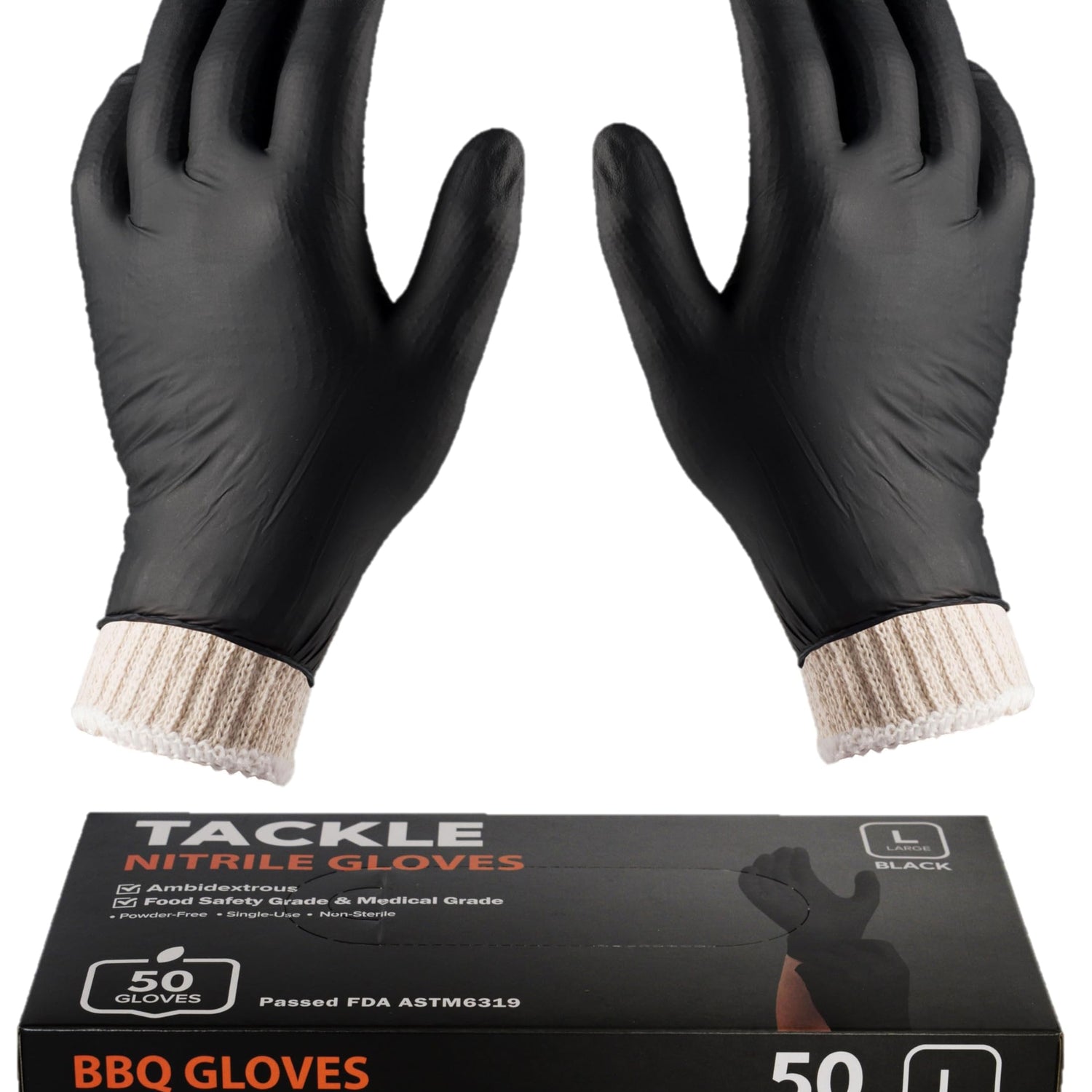 Tackleit BBQ Gloves 2 Cotton Glove Liners and 50 Disposable Nitrile for Cooking Baking Grilling Washable Cotton Liners Powder Latex Free Nitrile Gloves