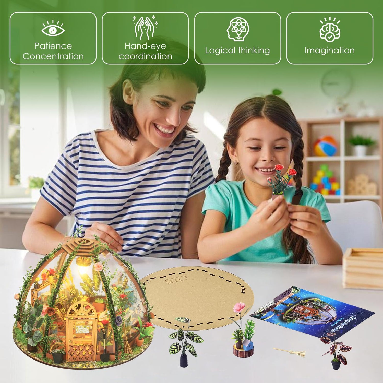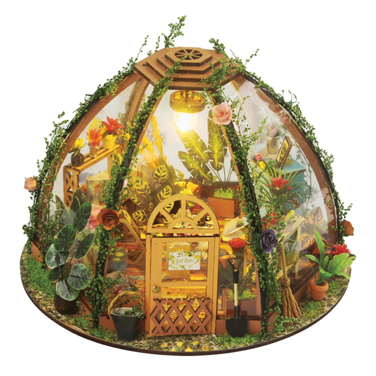 Taimimy DIY Miniature House Kit,Miniature Building Kits,Wooden Greenhouse Miniature Kit with Furniture & LED,Mini House Making Kit for Adults,Hobby Craft Home Decor Birthday Gifts