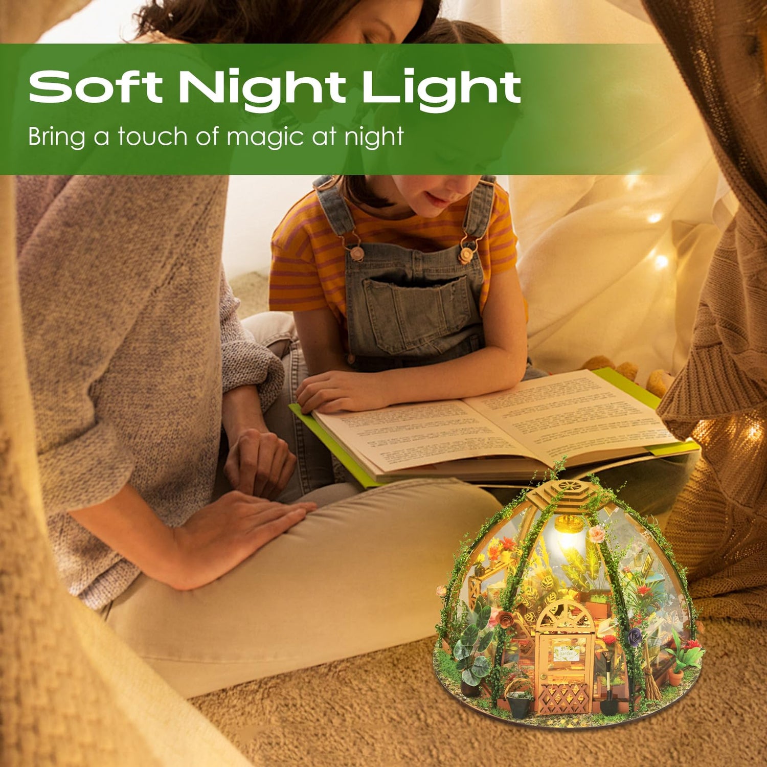 - Eye-Catching Corner with Cozy Glow:Flower House features a transparent, pointed-arch structure and a variety of plants, creating a lush, botanical greenhouse.Turn on the LED lights and the soft lighting instantly turns any room into a serene oasis. Perfect for that "wow" moment when guests see it