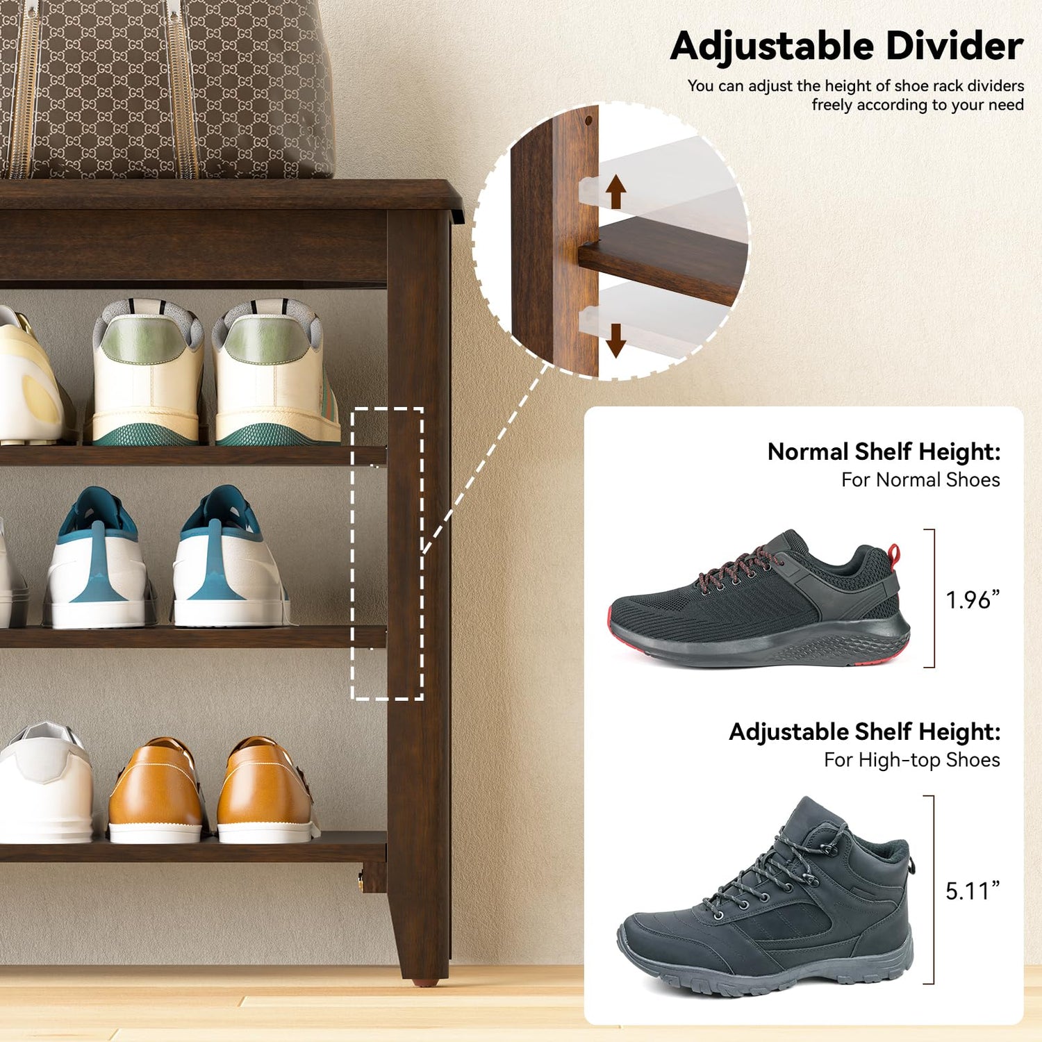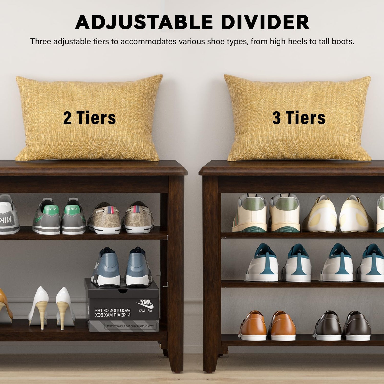 Taitiy Shoe Bench Storage Rubberwood, Entryway Bench with 3-Tiers Height Adjustable, Shoe Rack Front Door Entrance Organizer for Hallway Living Room, Mudrooms, Walnut,31.5"