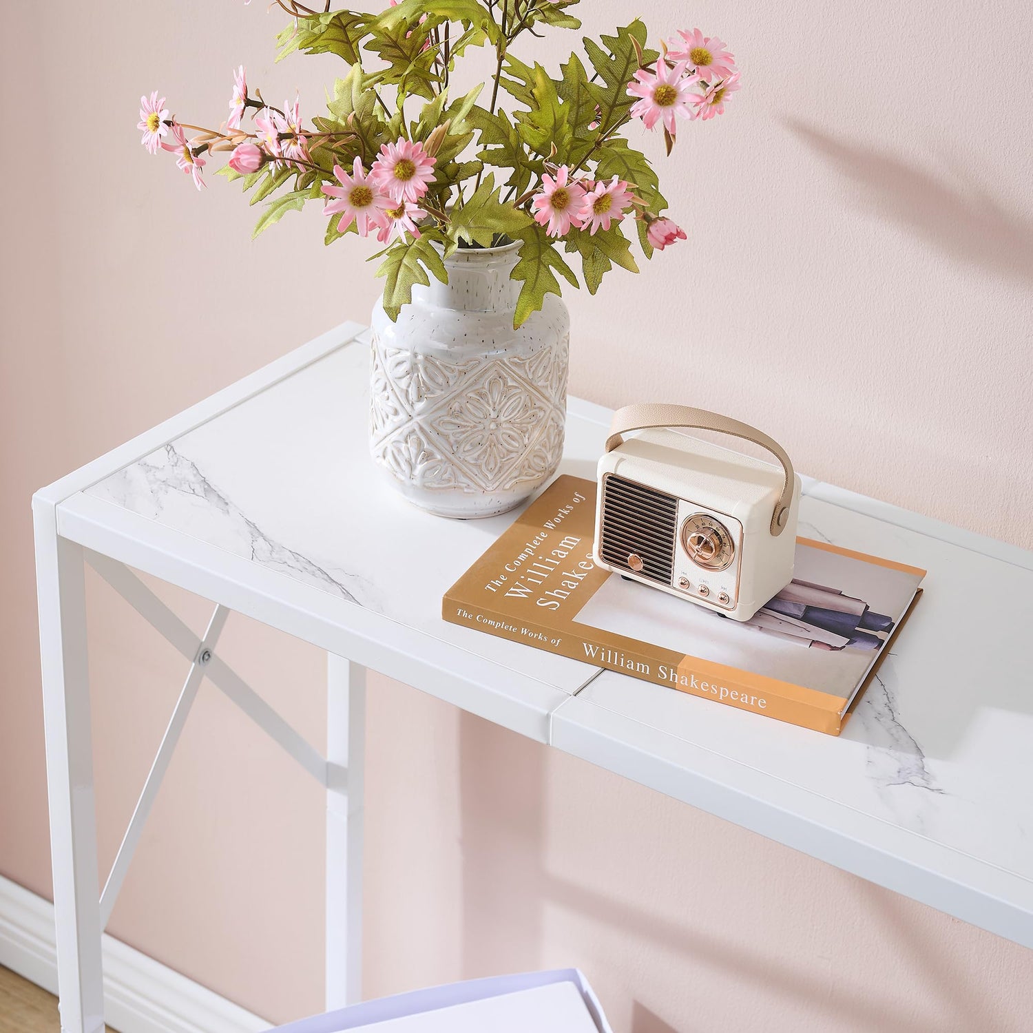 - 【Minimalist Yet Functional】United sleek, white metal and an imitation marble counter top into one piece, the modern console table will take your home to the next level.
