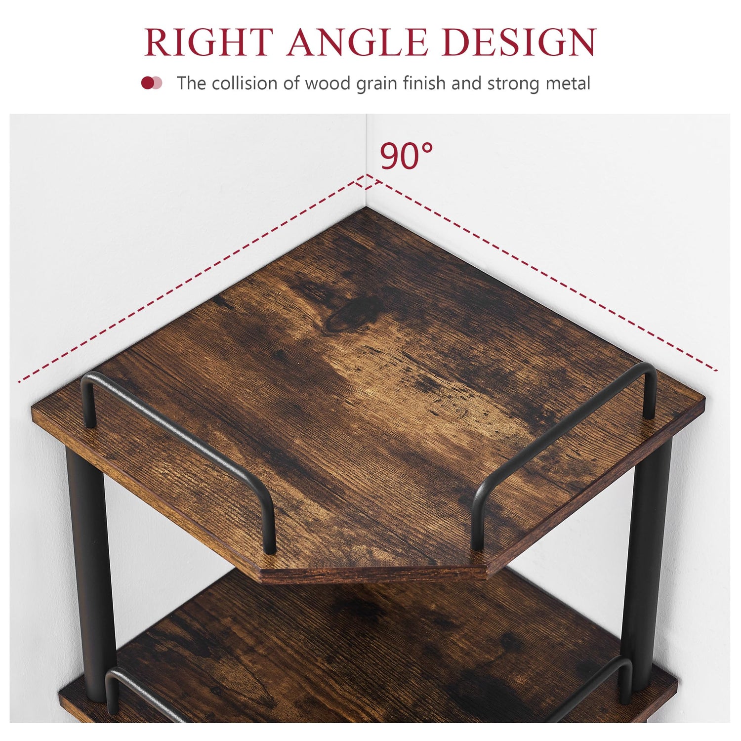 With its industrial and vintage flair, the Tajsoon corner bookshelf seamlessly fits in any environment. Whether placed in your living room, bedroom, kitchen, bathroom, office, or balcony, it adds a touch of character while serving as an efficient home décor solution.
