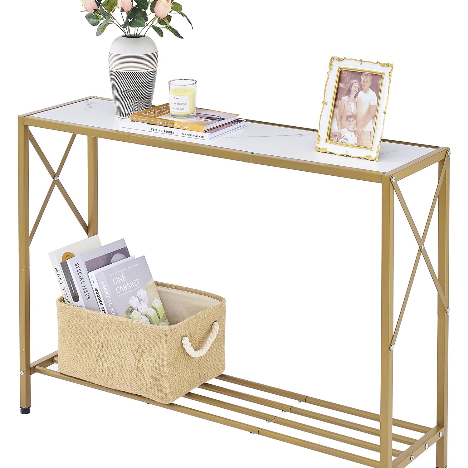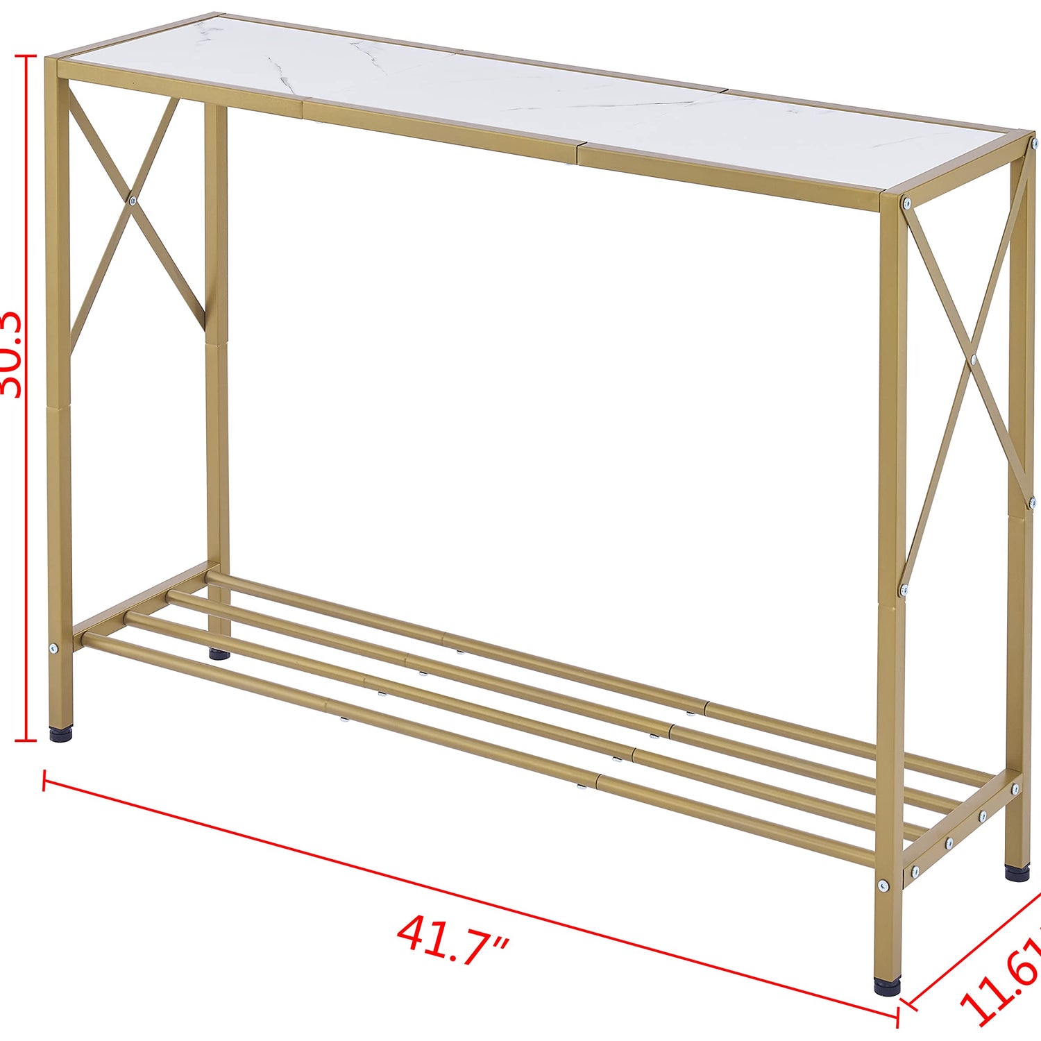 Tajsoon Entryway Table, 2-Tier Entry Way Console Entrance Table, 41.7”L Narrow Sofa Table with Shelves, Ideal for Hallway, Entryway, Living Room, Foyer, Corridor, and Office (Gold & White)