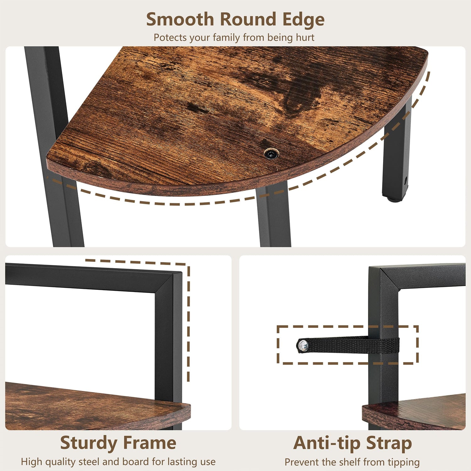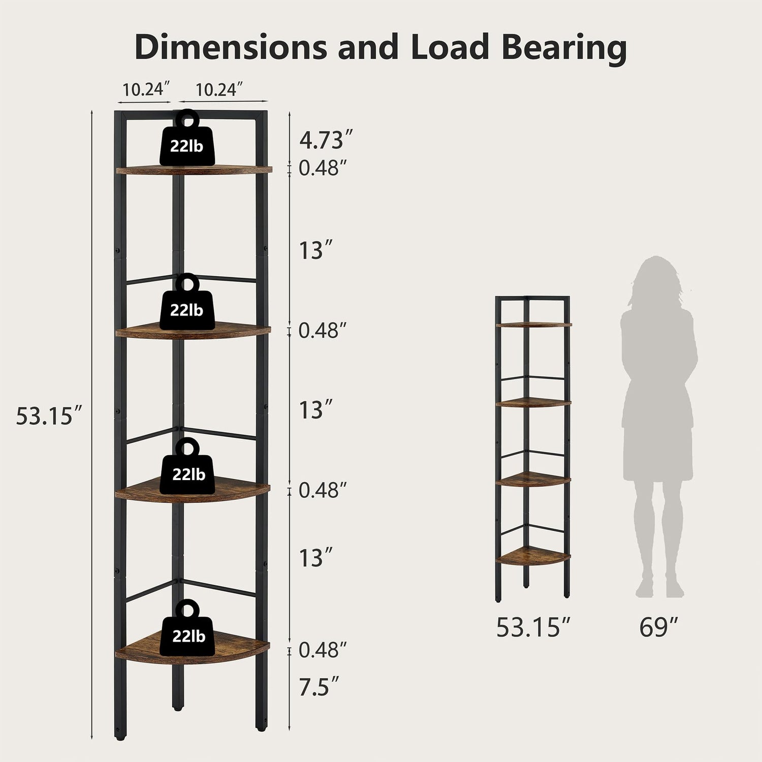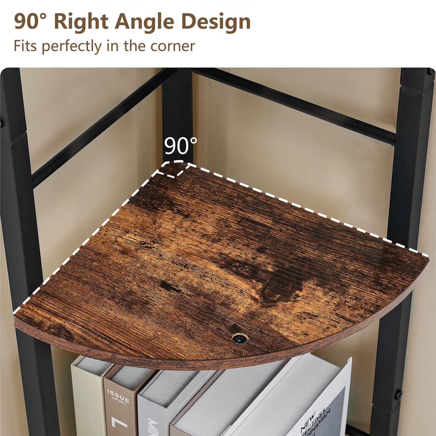 Tajsoon 4-Tier Industrial Corner Ladder Shelf - Rustic Brown Metal Frame for Living Room, Bedroom, Office