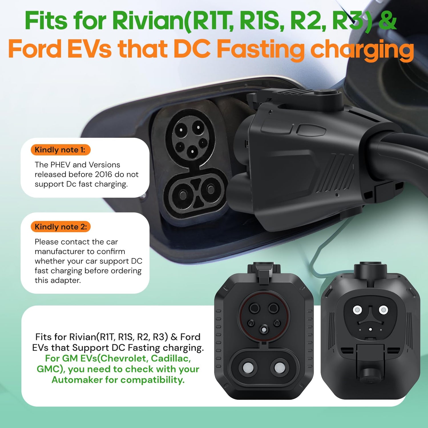 - [Compatible with Ford, Rivian, GM EVs that Support DC Fast Charging with Tesla Supercharger, Check with Your Automaker for Compatibility]: Compatible With: Ford Electric & Hybrid Cars (F-150 Lightning, E-Transit, Maverick, Escape ST-Line Elite Hybrid, F-150), Rivian EVs (R1T, R1S, R2, R3), GM EVs(Chevrolet, Cadillac, GMC) EVs. [Not Compatible With: Audi, BMW, Kia, Lucid, Mazda, Mercedes, MINI, Porsche, Stellantis, Toyota, Volkswagen.] Kindly Note: Not compatible with the 2012-2016 Ford Focus Electric, and the 2013-2016 Chevy Spark EV.