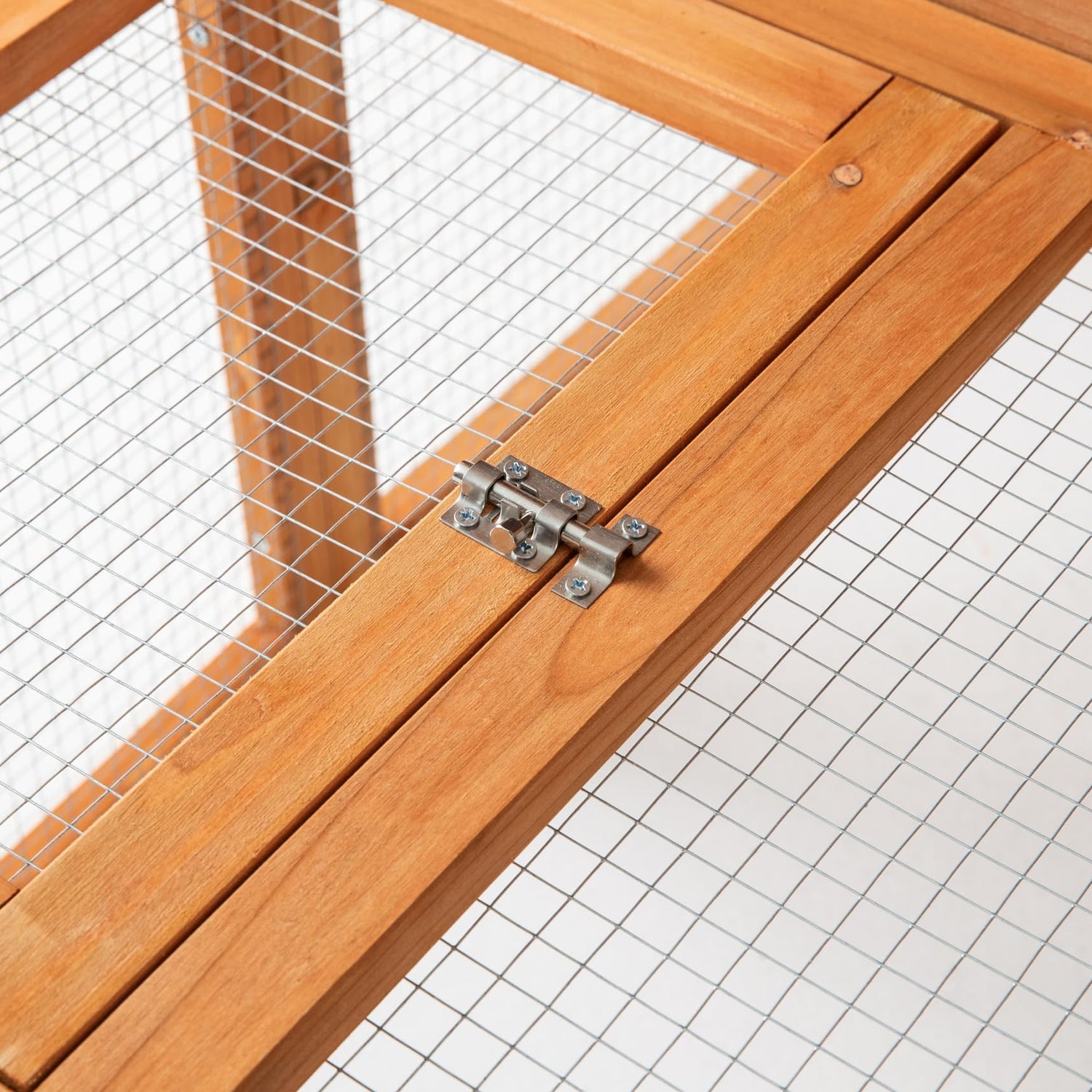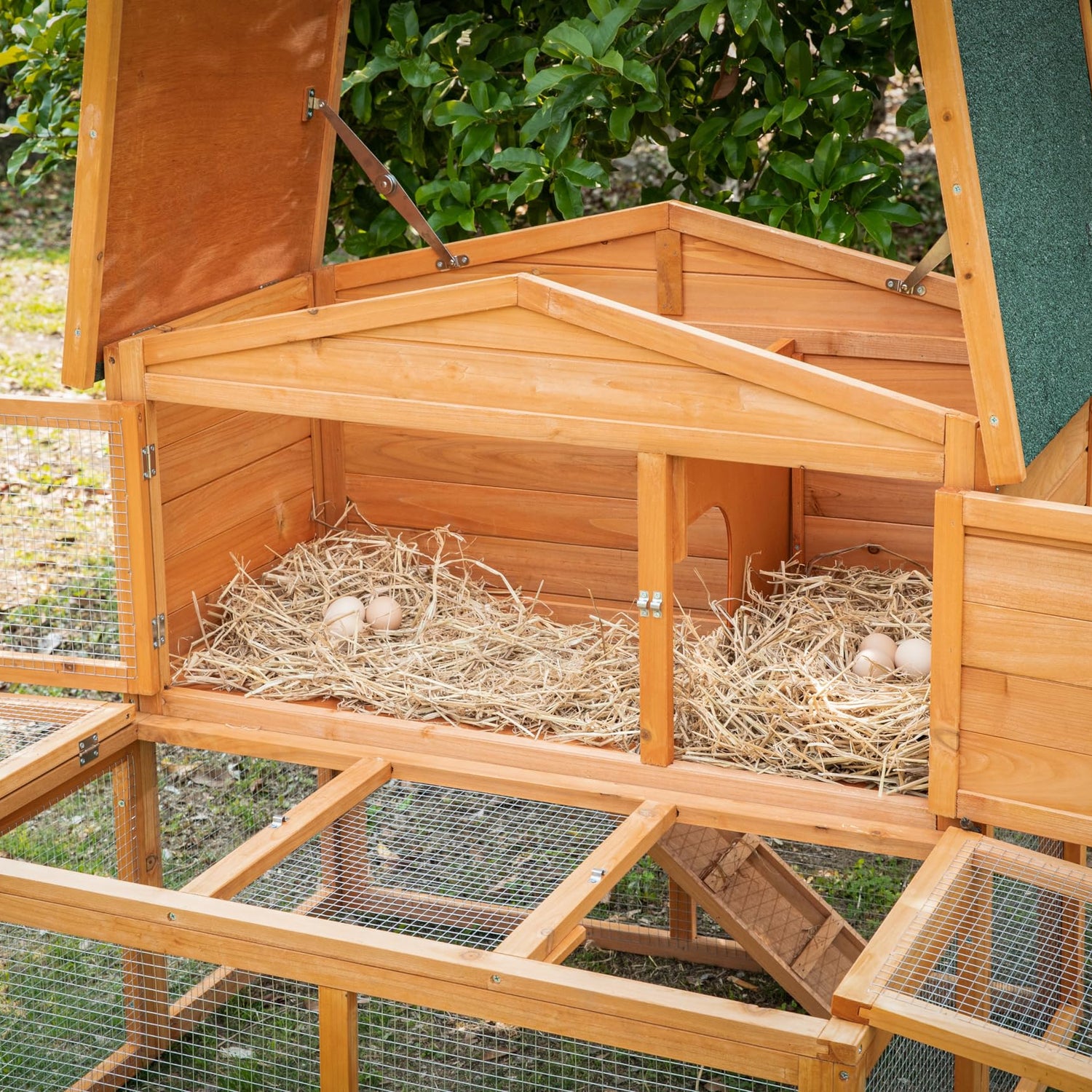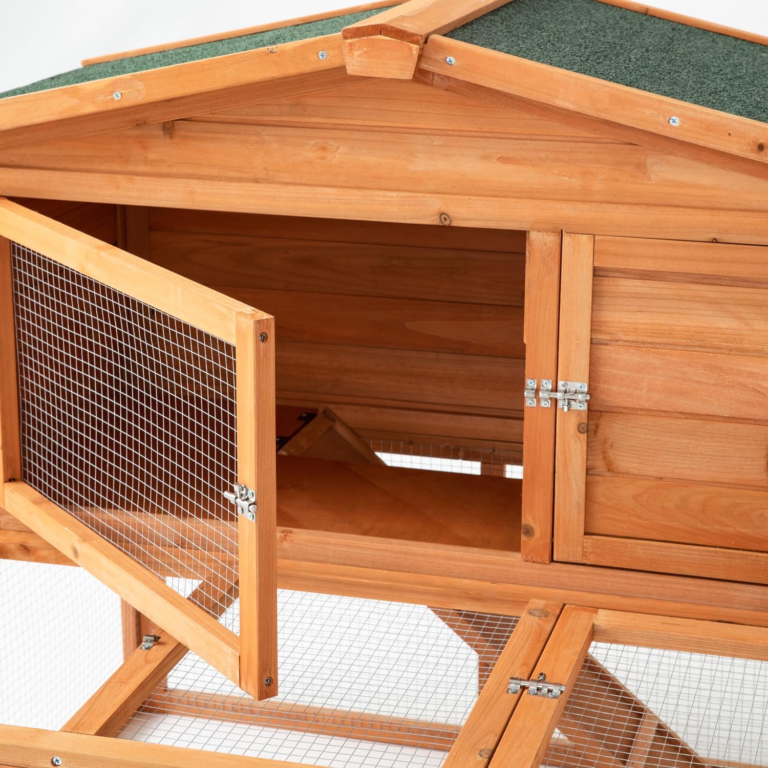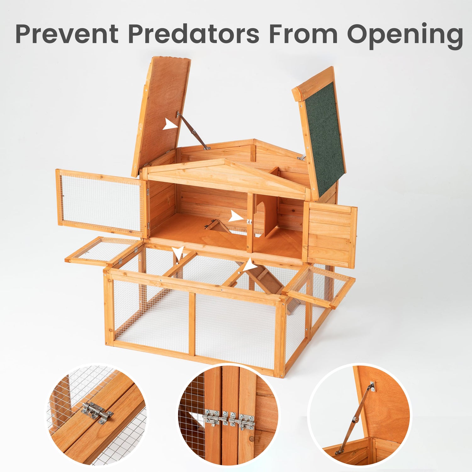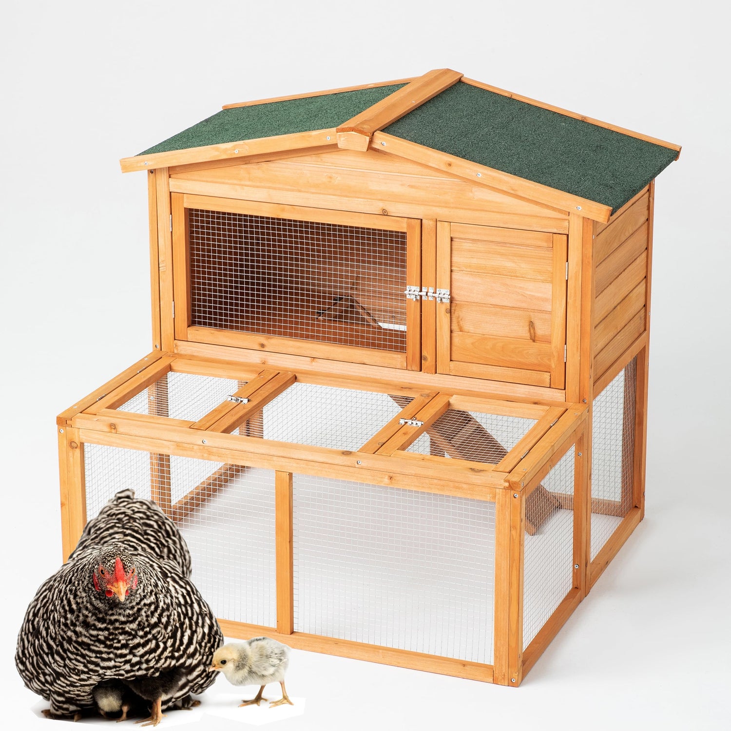 - 【Outdoor waterproof】: The chicken coop has an asphalt waterproof top, and the wood has undergone special waterproof treatment. Durable and sturdy, keeping the chicken coop dry and safe, effectively rainproof. The roof of the chicken house can be lifted and equipped with metal braces.
