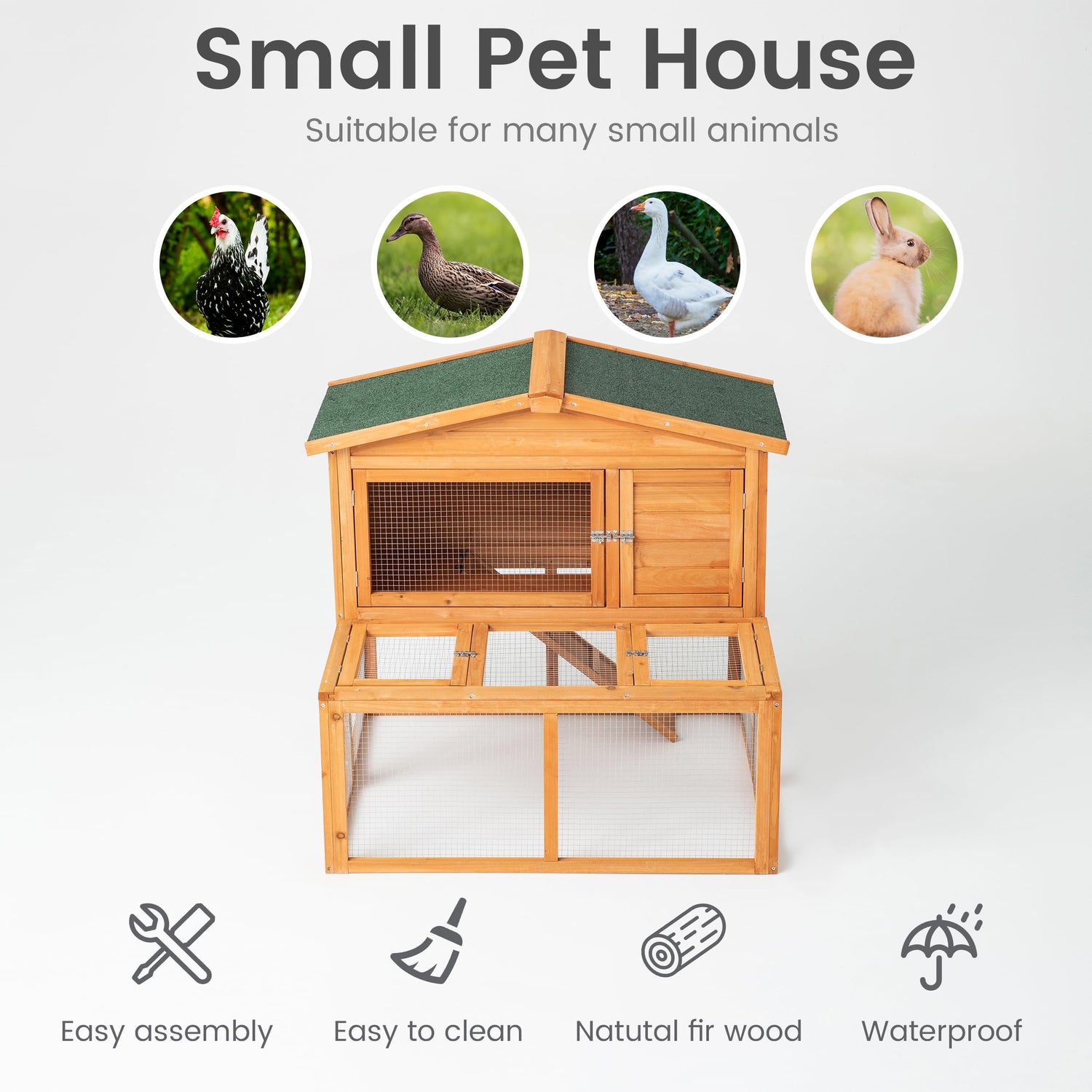 TAKUKA Outdoor Mobile Wooden Chicken Coop with Run, Small Animals Rabbit Hutch with Nest Box, 2 Story Duck Cage Hutch with Weatherproof for Backyard (43W*38D*39H)