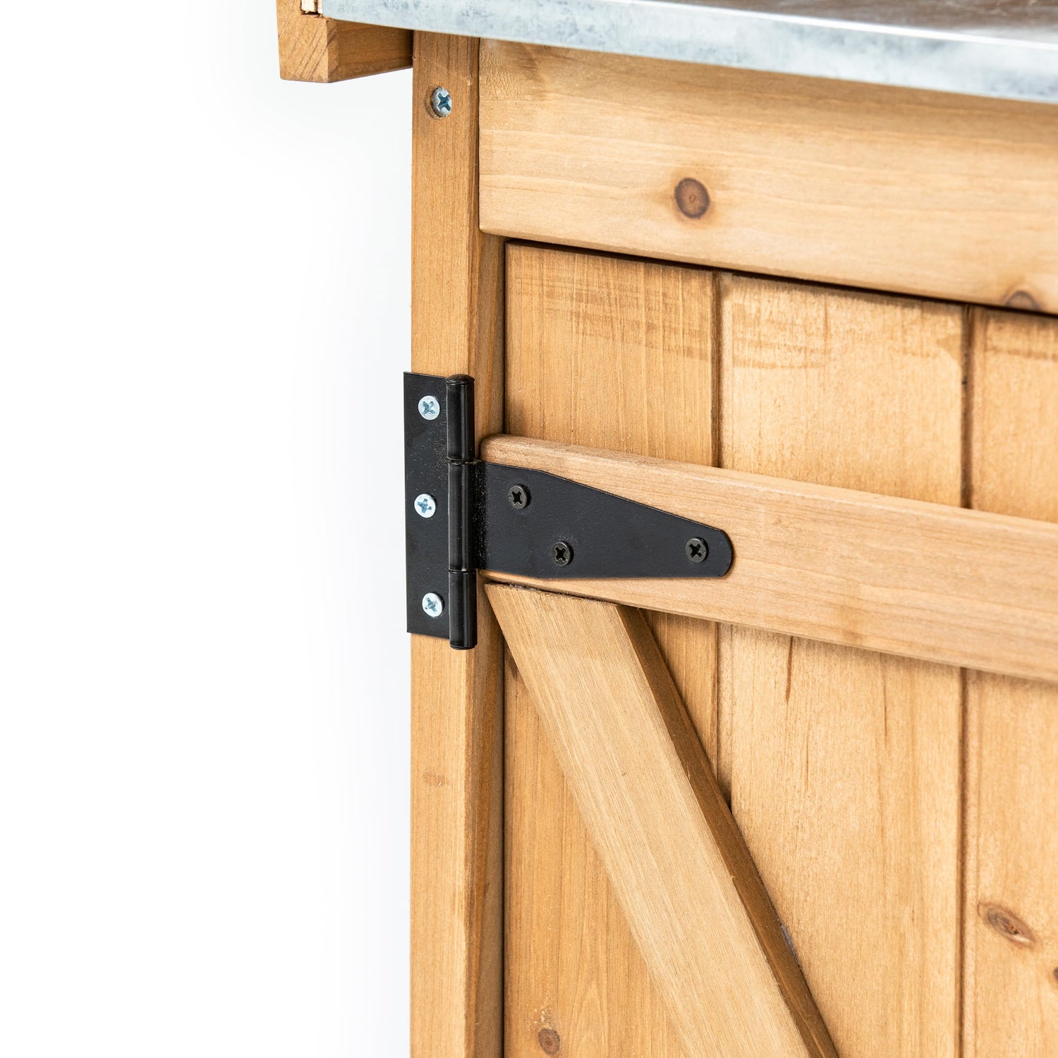 TAKUKA Outdoor Wooden Potting Bench with Wheel Double Doors & Metal Tabletop, Outside Storage Cabinet & Horticultural Planting Work Table for Garden Balcony Backyard