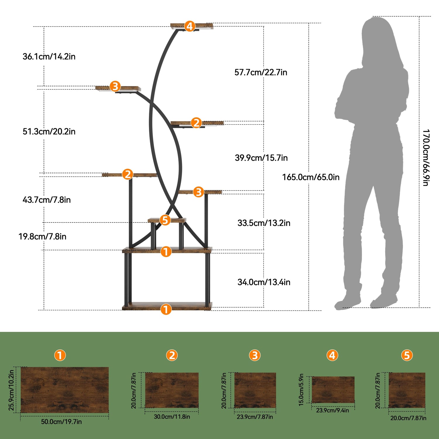 - Space-Saving Shelf: Size: 65"x 29" x12". This 8 tier corner shelf provide ample storage space without taking up too much floor space, the large space allows you to display books, crafts, decorations, potted plants or household items. It is suitable for small apartments and homes.