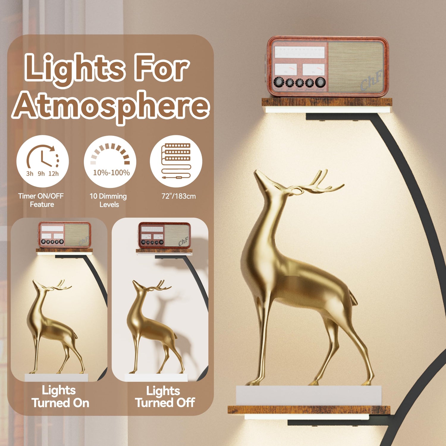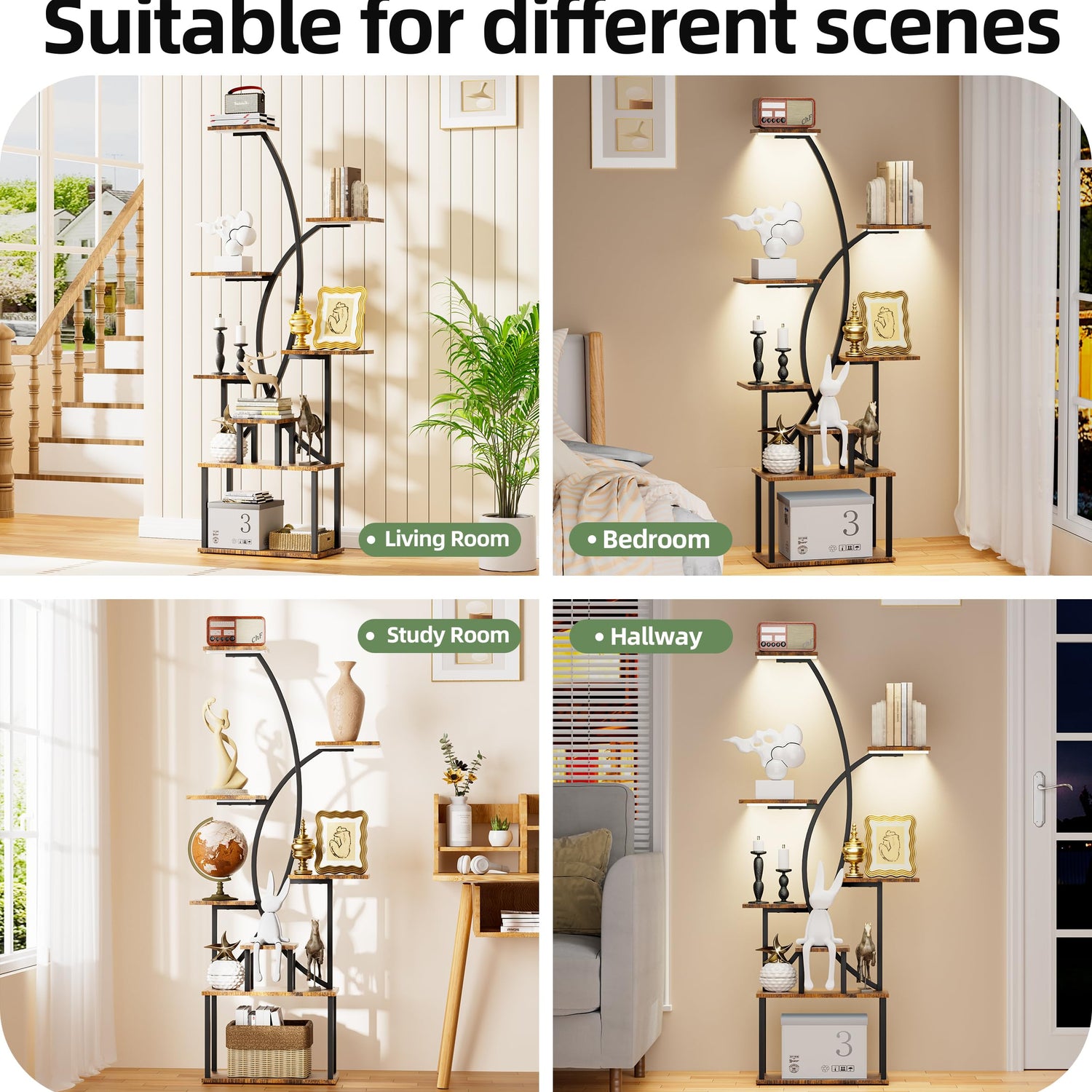 A perfect decorative addition to your home - this standing shelf with lights features a elegant and stylish design, a combination of urban industrial and rustic style, suitable for any style of room decoration, highlighting the unique feel and atmosphere of your home.