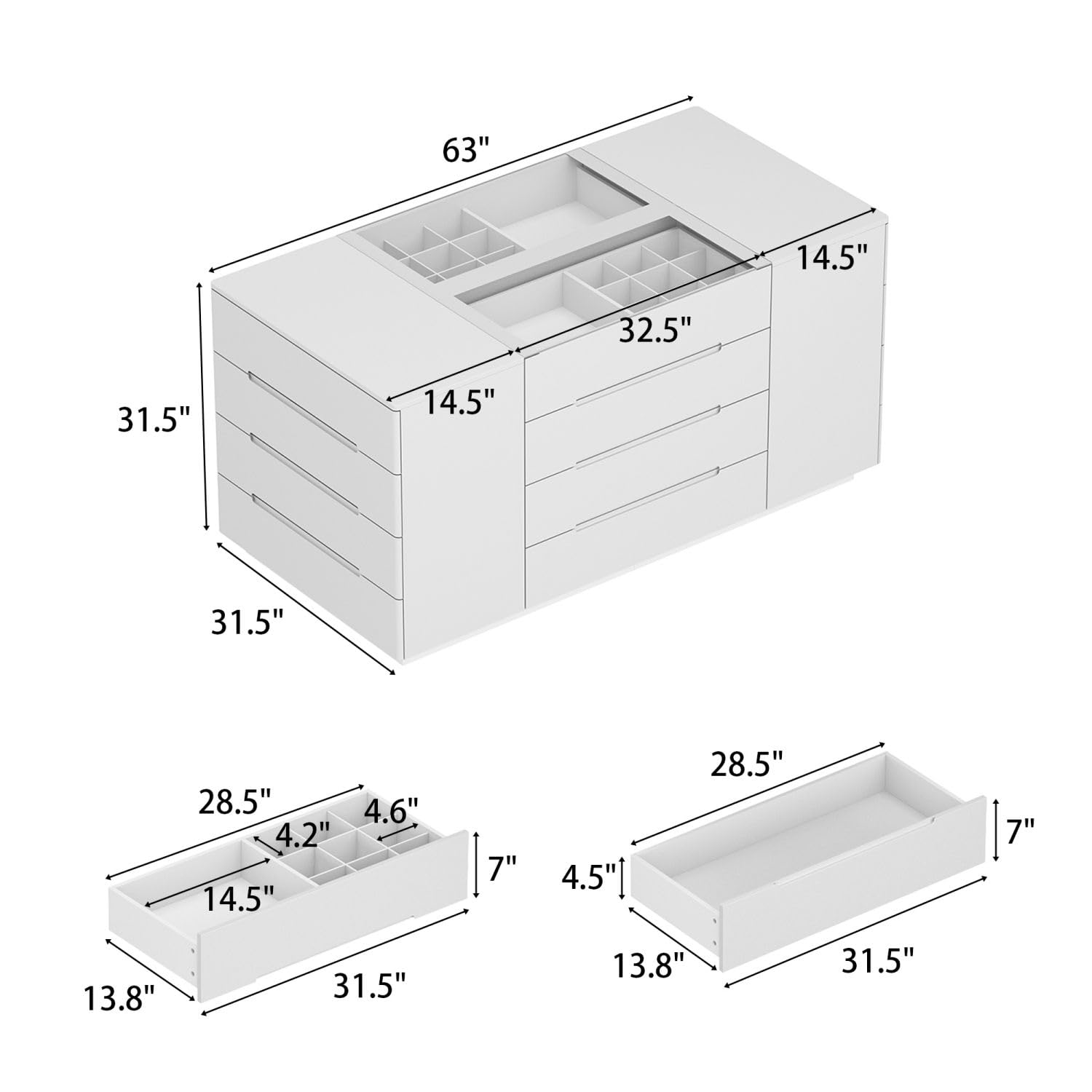 TAMUNE Armoire Bedroom Island Wardrobe Closet Island with 16 Drawers & Glass Tabletop, Island Dresser with Jewelry Organizer, Closet Island for Cloakroom White (63”W x 31.5”D x 31.5”H)