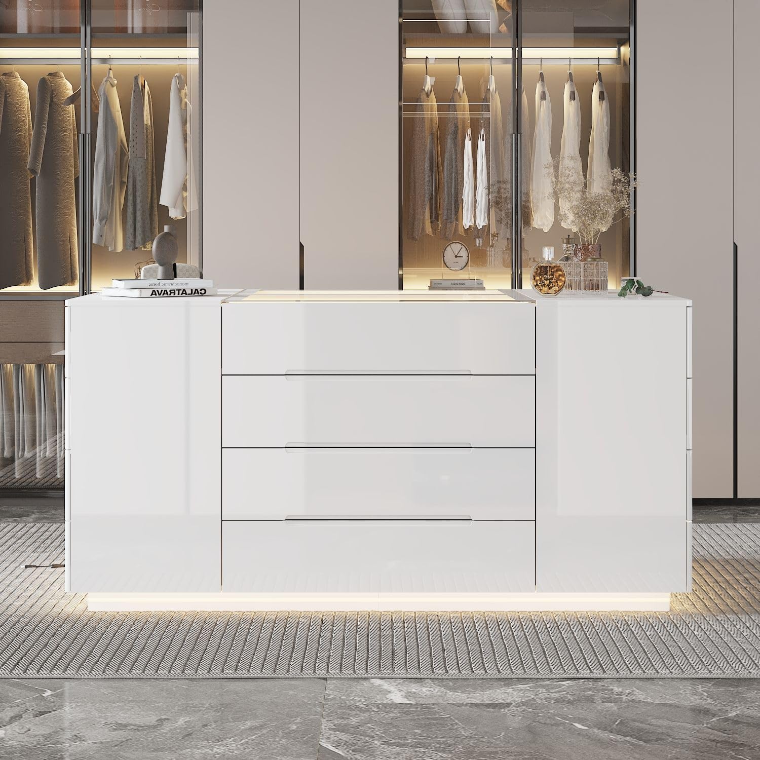 - Modern Style - This armoire island is designed in modern style. With clean glass and pure white surface, it looks exquisite and elegant. Matching with no-handle design, our storage island features minimalist sense, adding a touch of stylish aesthetic to the room. Features warm lights on the bottom to create stunning atomsphere.