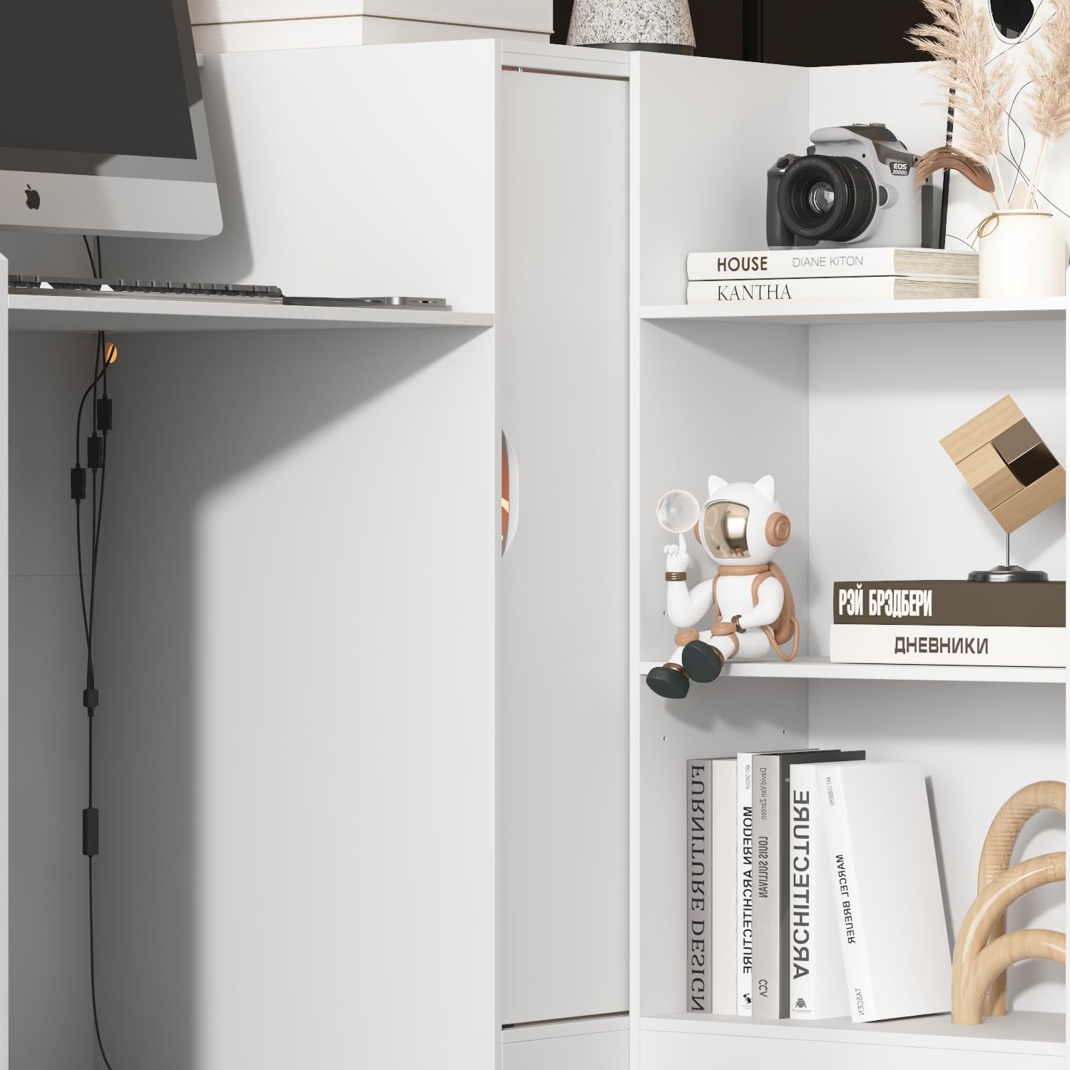 - Ample Workspace - Tabletop of this L-Shape checkout counter table is wide enough to hold compute,calendar, books and other office supplies. There are multi-layer glass shelves that fit to store some ornament and products for displaying while also decorating the area.