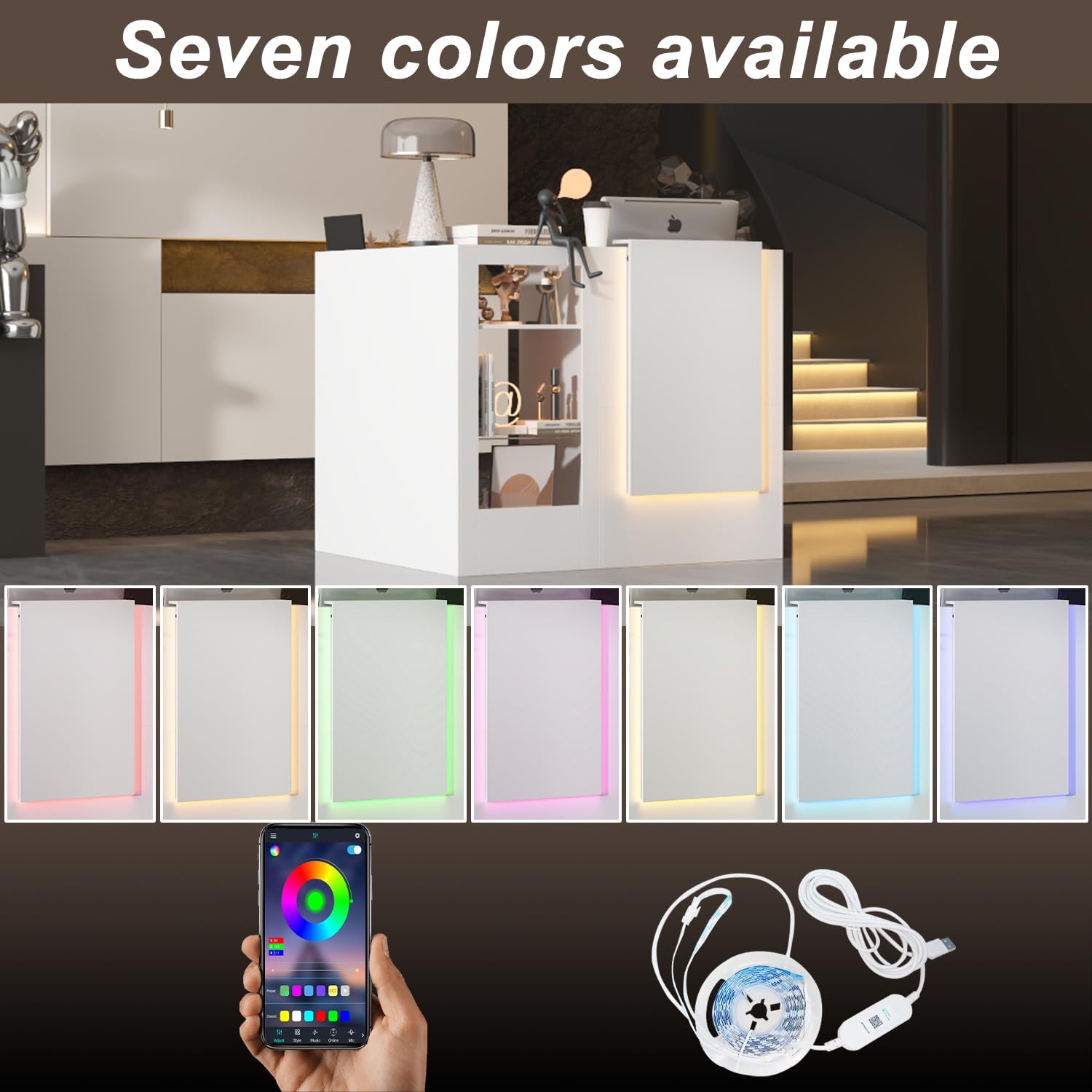- LED Lighting - This reception desk comes with RGB light strip, offering some color options. Colors can be adjusted by switch. The lighting will add ambiance and better showcase the products in cabinet. Soft glow will also create a welcoming first impression for guests.