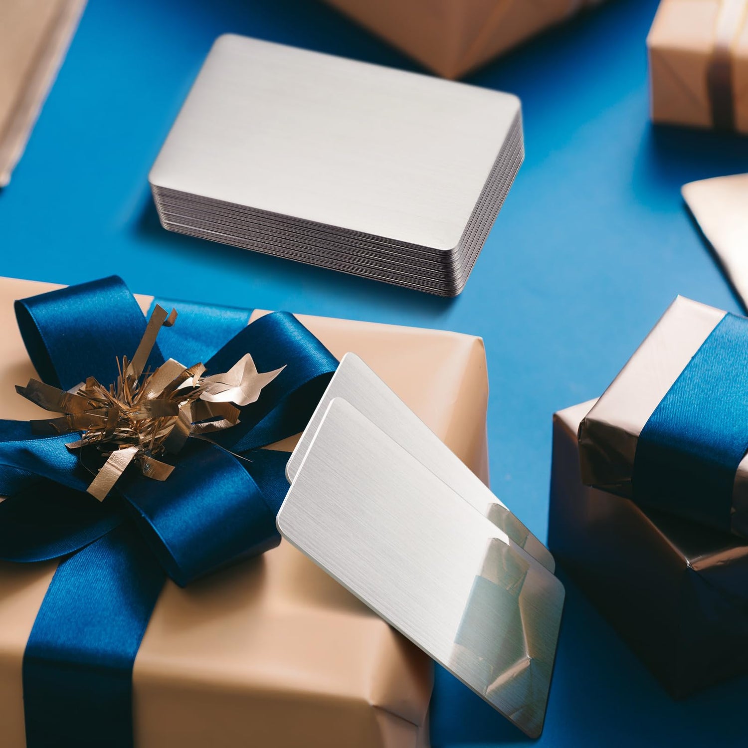 Tandefio 50 Pcs 304 Stainless Steel Metal Business Cards Sublimation Blank Steel Card Laser Engraving Stainless Cards for House Office Customer DIY Gift Plate Cards (0.8 mm Thickness)