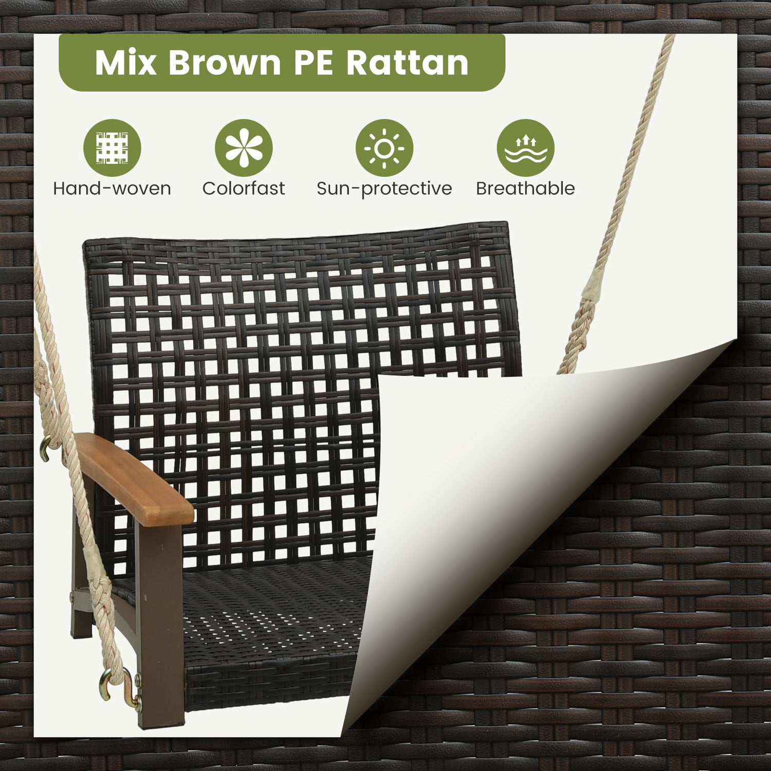 - Stay Durable: This bench swing boasts hand-woven mix brown PE rattan, which is colorfast, sun-protective and breathable for durability and coziness.