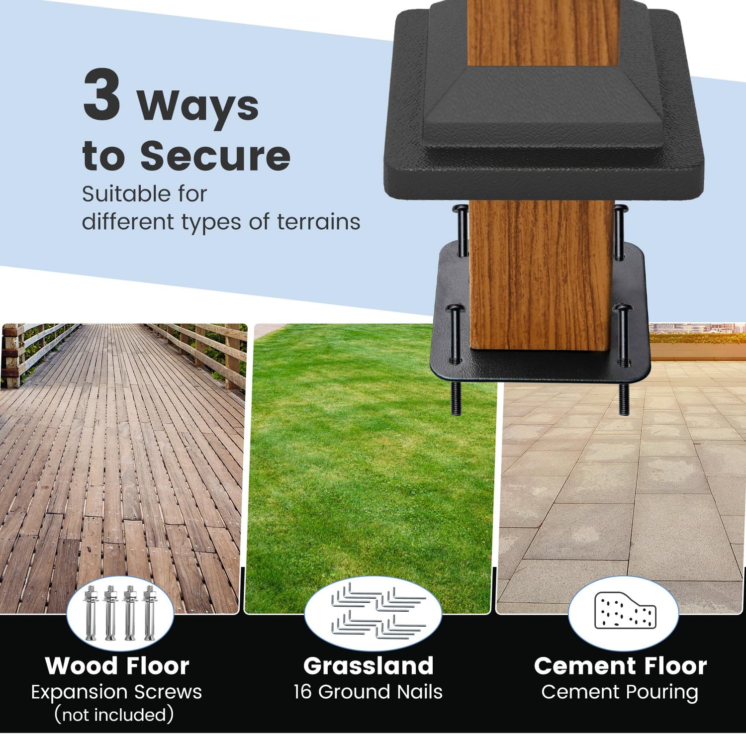 - 3 Ways to Secure: For added stability, the patio pergola features 4 pre-drilled metal feet, allowing you to secure the grill gazebo with 16 ground nails. Additionally, you can secure the pergola to a wood or cement floor by expansion screws or cement pouring(not included).