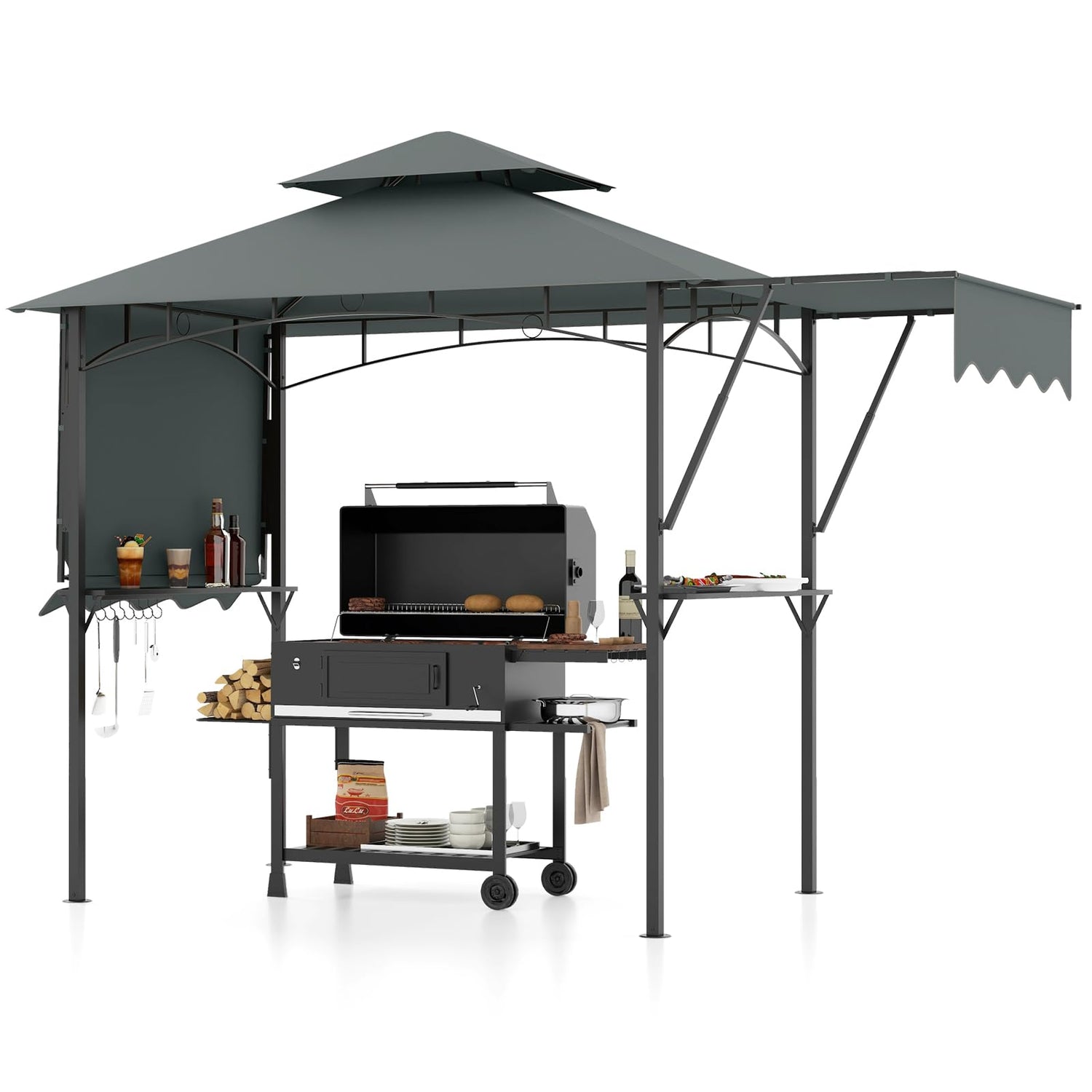 Tangkula 13x5 Ft Grill Gazebo with Dual Side Awnings, 2-Tier Barbecue Gazebo with 2 Shelves, 7 Hooks, Adjustable Shadow, Outdoor Grill Canopy for Backyard Garden Poolside (Grey)