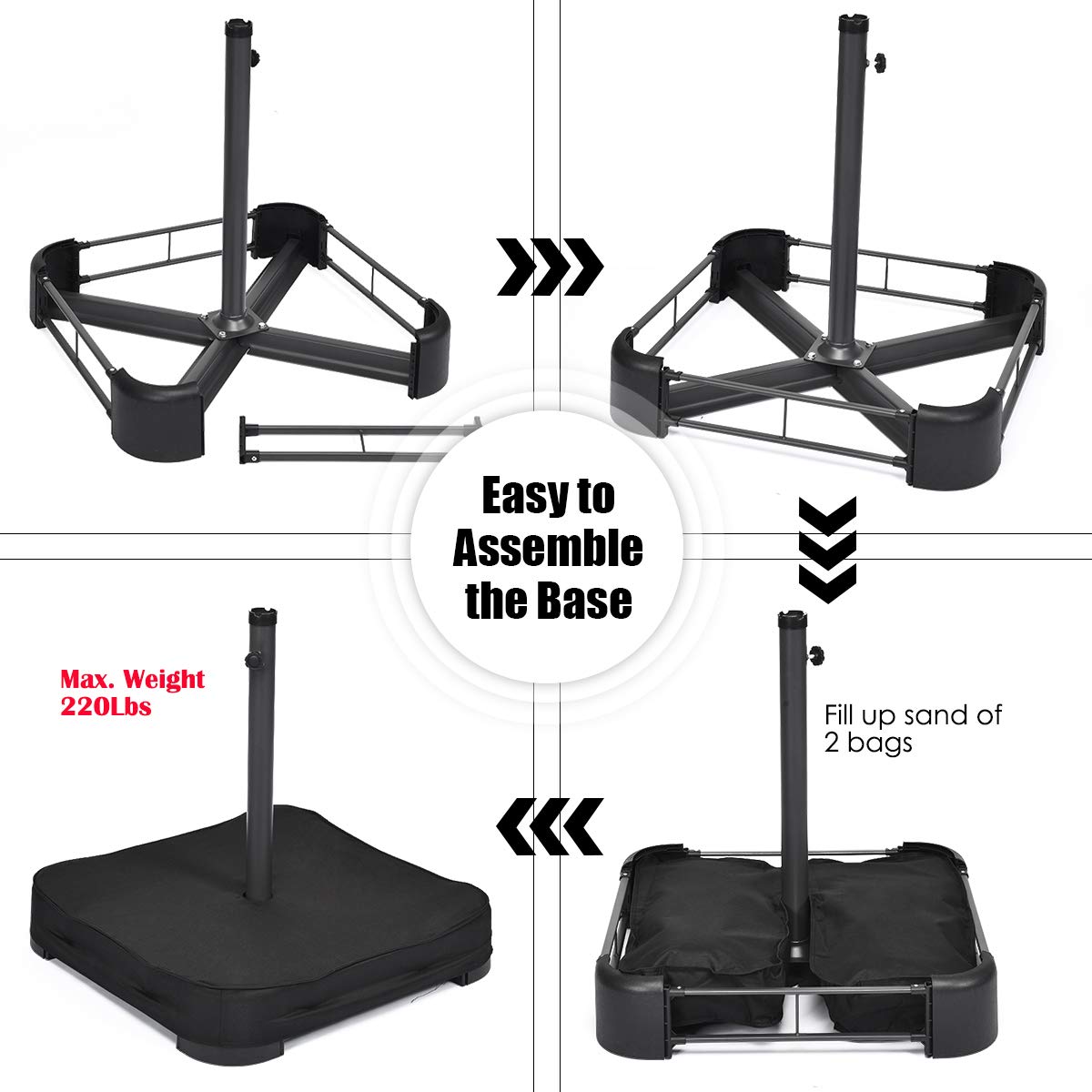 - Rugged Umbrella Base Included: This double-sided patio umbrella comes with a durable umbrella base, so you do not need to buy it separately. In addition, this umbrella stand includes a metal frame and two sandbags (sand not included), which is easy to assemble with clear instruction. Moreover, each sand bag can be filling with 110 lbs sand to keep the umbrella stable.
