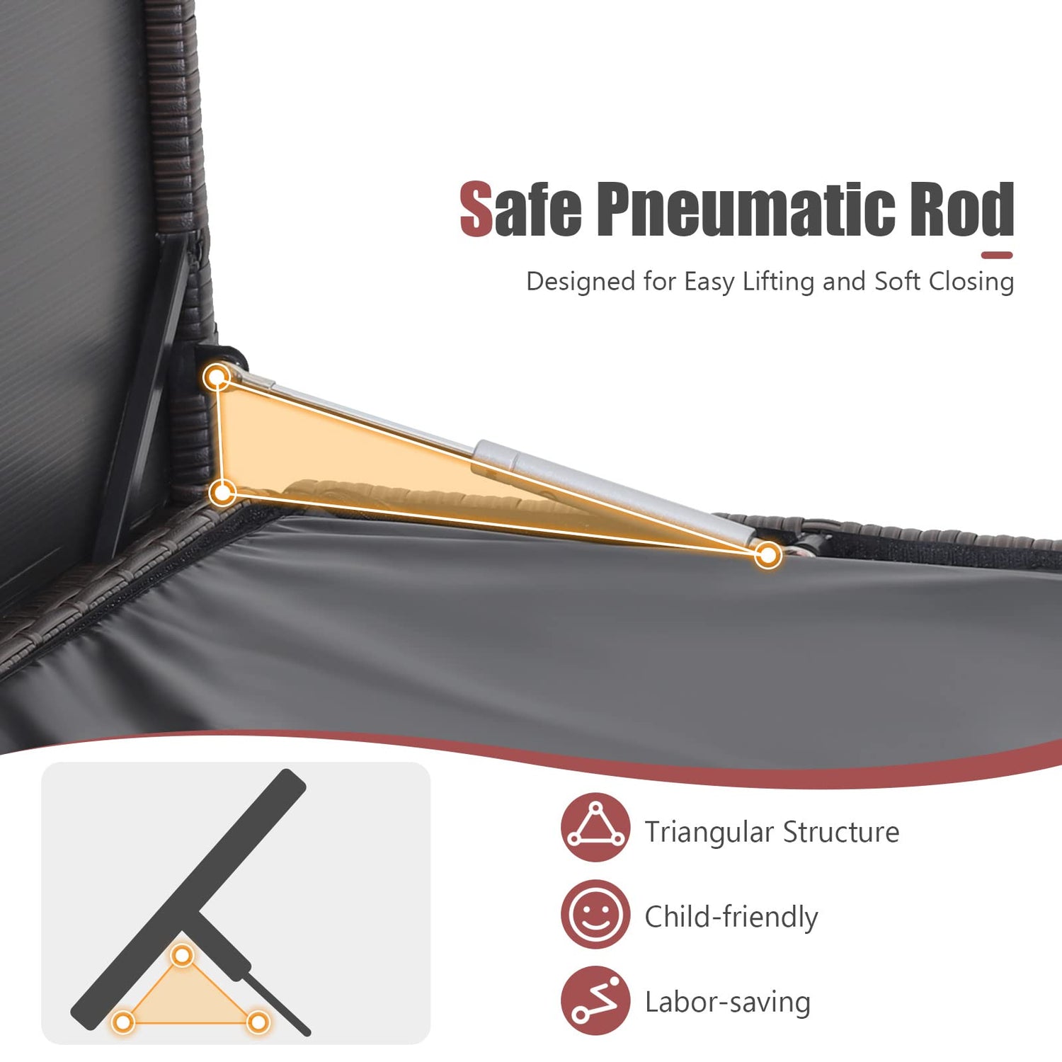 - Better Protection: The waterproof liner with zipper is designed to keep the stored items dry. After storing, the safe pneumatic rods with triangular structures allow you to close the lid softly.They are labor-saving and child-friendly.