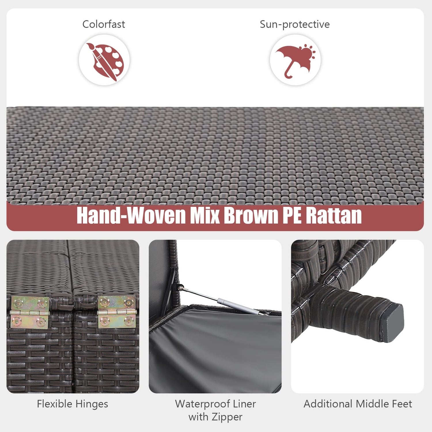 - Selected Materials: The hand-woven mix brown PE rattan is colorfast and sun-protective that fits the outdoor environment better. Likewise, the sturdy and rustproof metal frame with additional middle feet adds strong stability. Please always keep the box dry.