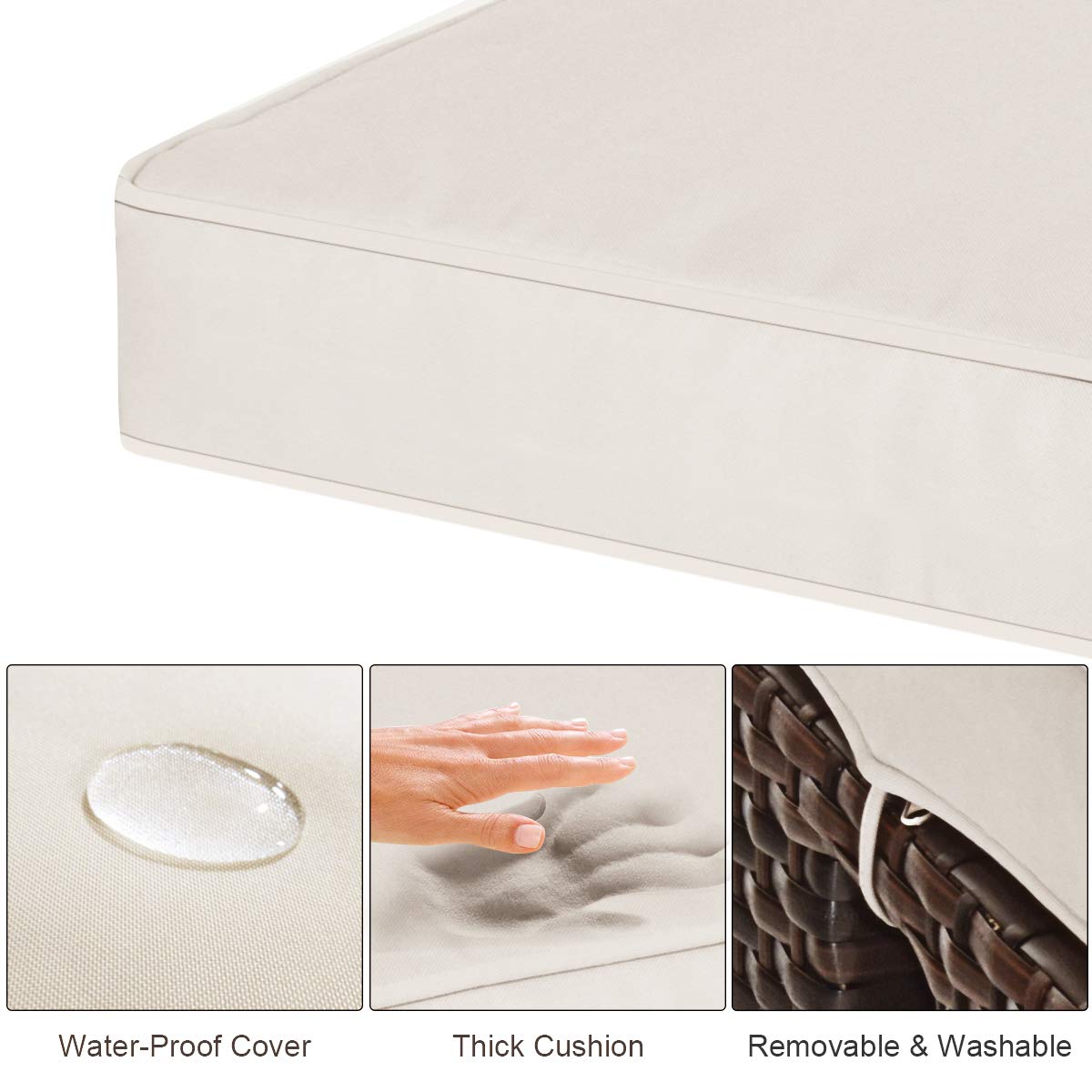 - Upgraded Comfortable Cushions: The ottoman comes with 2 soft cushions which is filled with premium sponge that is cozy and not easy to collapse. And the cover of cushions are made of waterproof and fade resistant polyester, so the cushions are suitable for outdoor use. More, the cushion are equipped with smooth zipper for removable and washable.