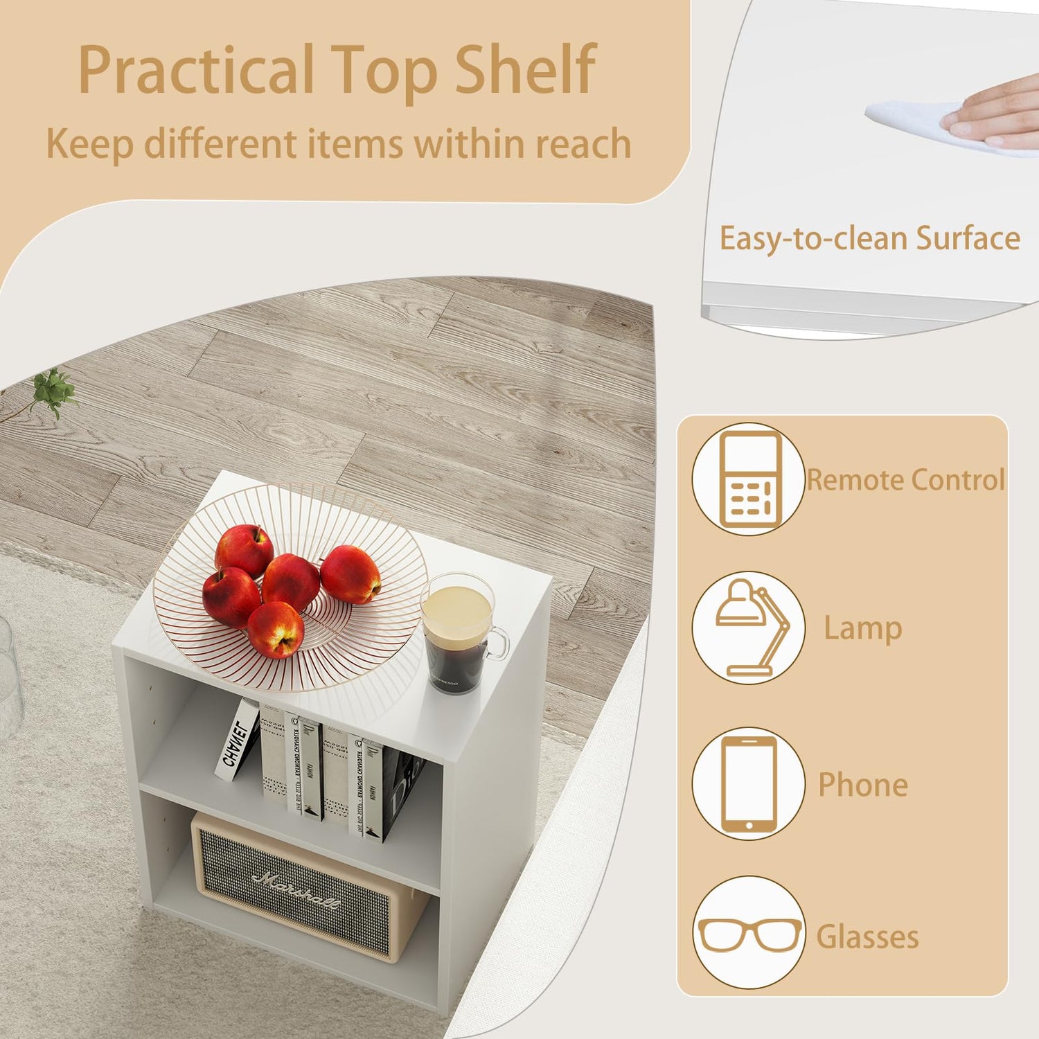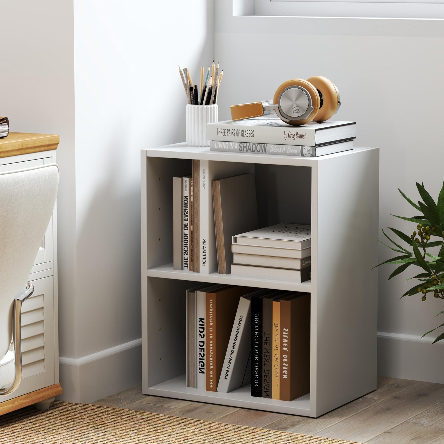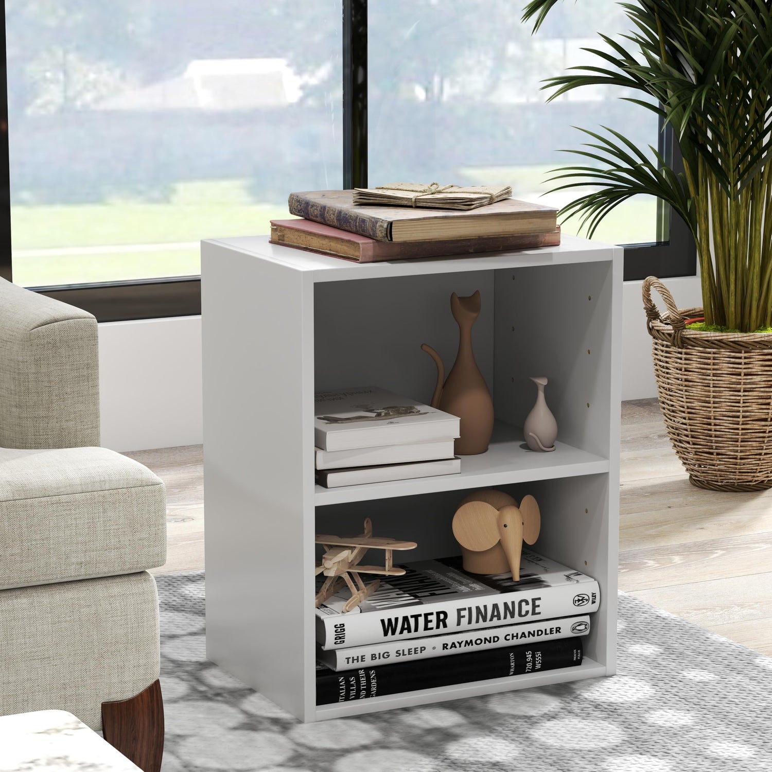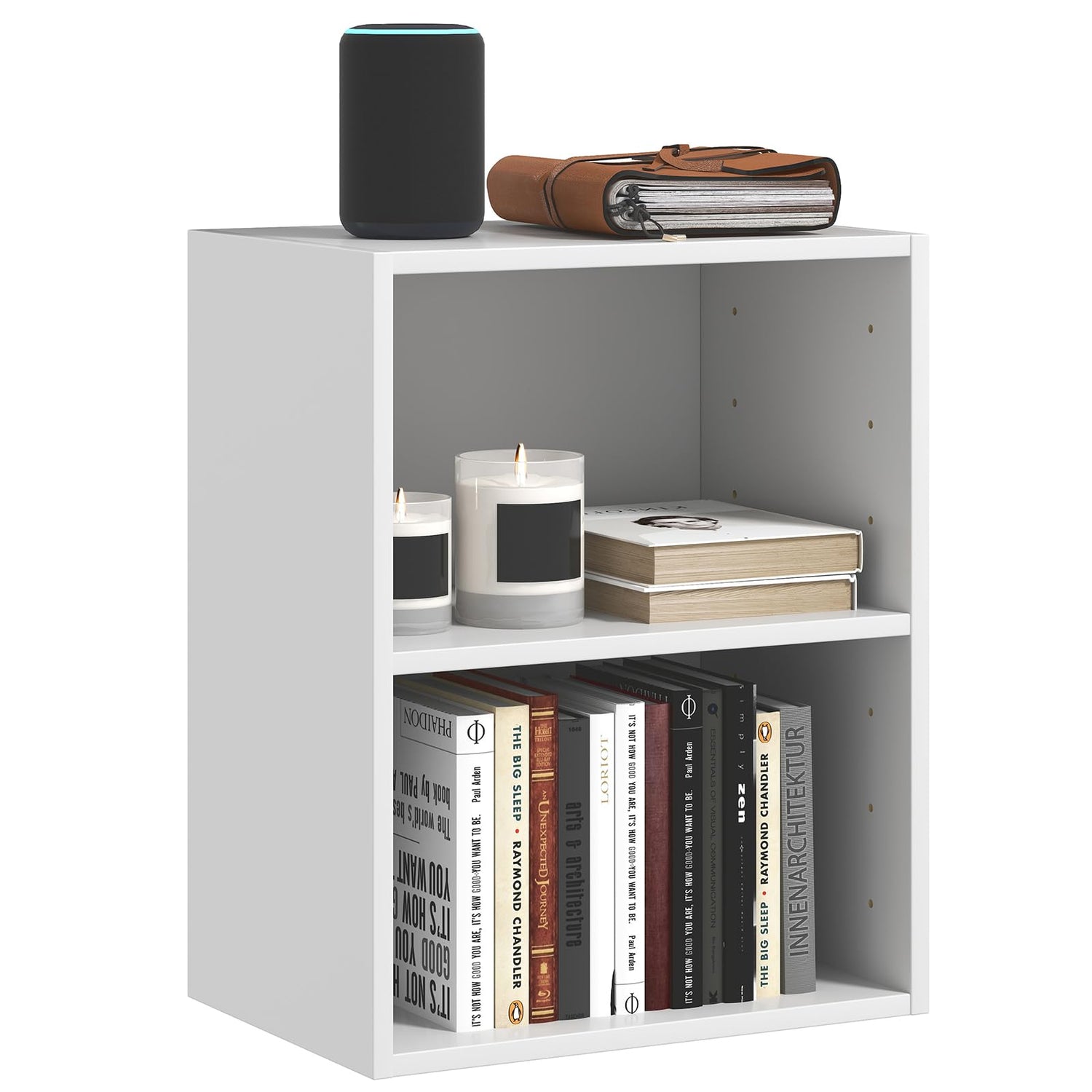 Tangkula 2-Tier Bookshelf, Open Shelf Bookcase with 7-Position Adjustable Shelf, Multifunctional Wooden Cubby Storage Display Shelf for Home Office Study Living Room (White, 1)