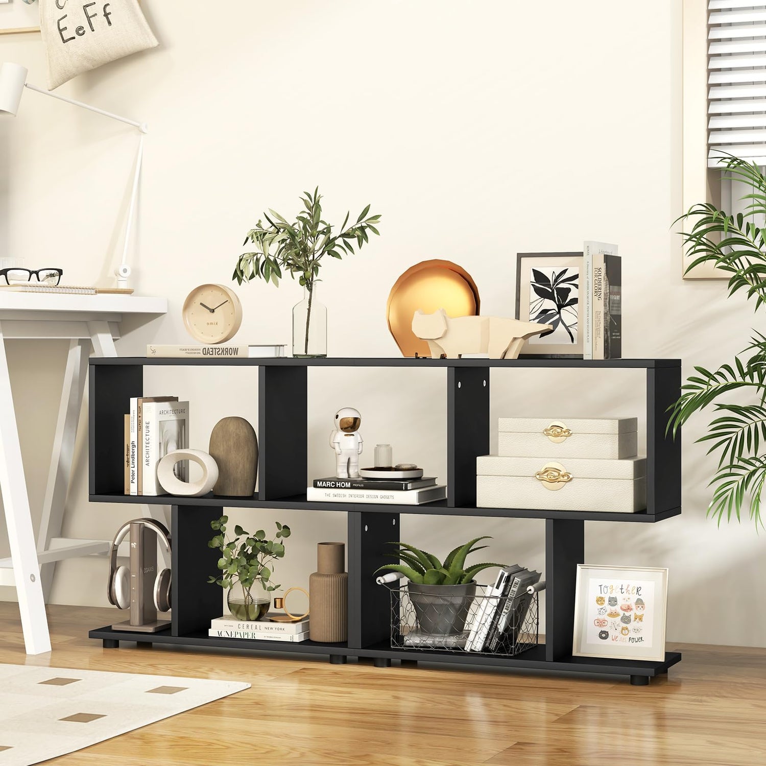Tangkula Geometric 2-Tier Bookshelf - Stylish Open Storage Shelf for Home and Office
