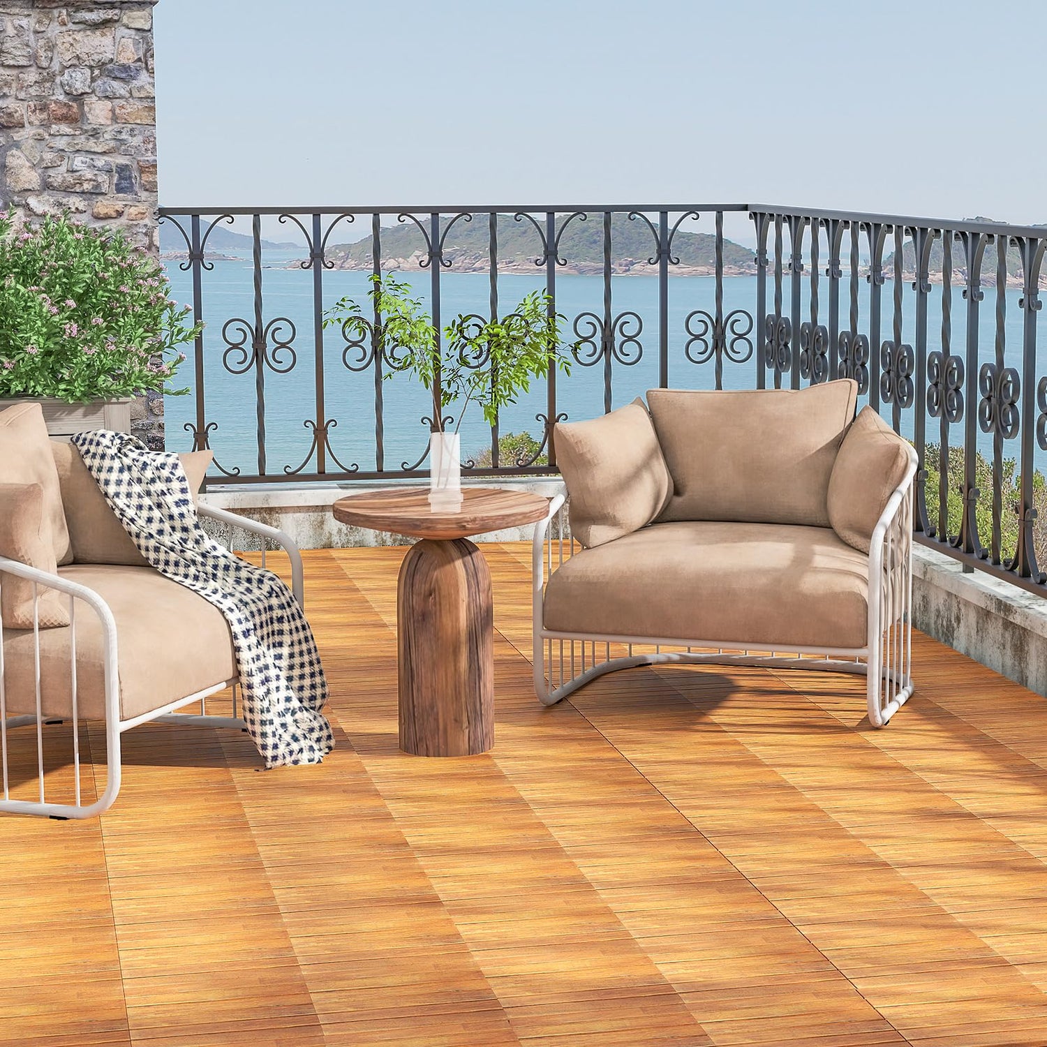 Tangkula 27 PCS Interlocking Deck Tiles, 12" x 12" Acacia Wood Floor Tiles for Patio, Balcony, Garden Indoor, 27 Sq. Ft Flooring Pavers Outdoor Waterproof, Tools Free Assembly (Stripe)