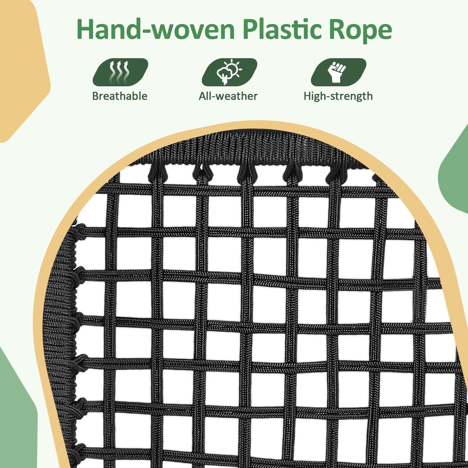 The all-weather hand-woven plastic rope is breathable to sit and durable to use