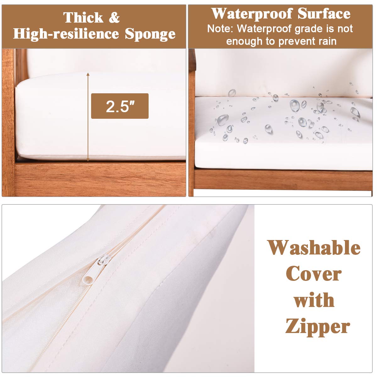 Tangkula 3 Pieces Patio Furniture Set, Includes Set of 2 Outdoor Acacia Wood Cushioned Chairs and Coffee Table, for Garden, Backyard, Poolside, Bistro and Deck, Patio Conversation Chat Set (White)
