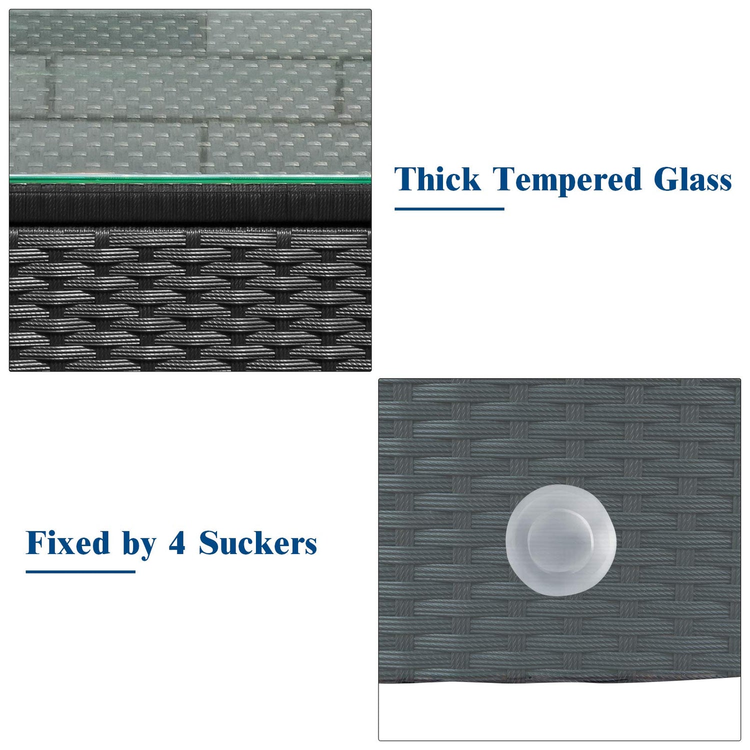 - Tempered Glass Top Table: Comes with a coffee table, the sofa set is great for having snacks or evening drinks. There is a thick tempered glass table on the top which has the function of heat resistance and shock resistance. And the top glass is fixed by four suckers tightly so that the glass won’t move when you are using the table.