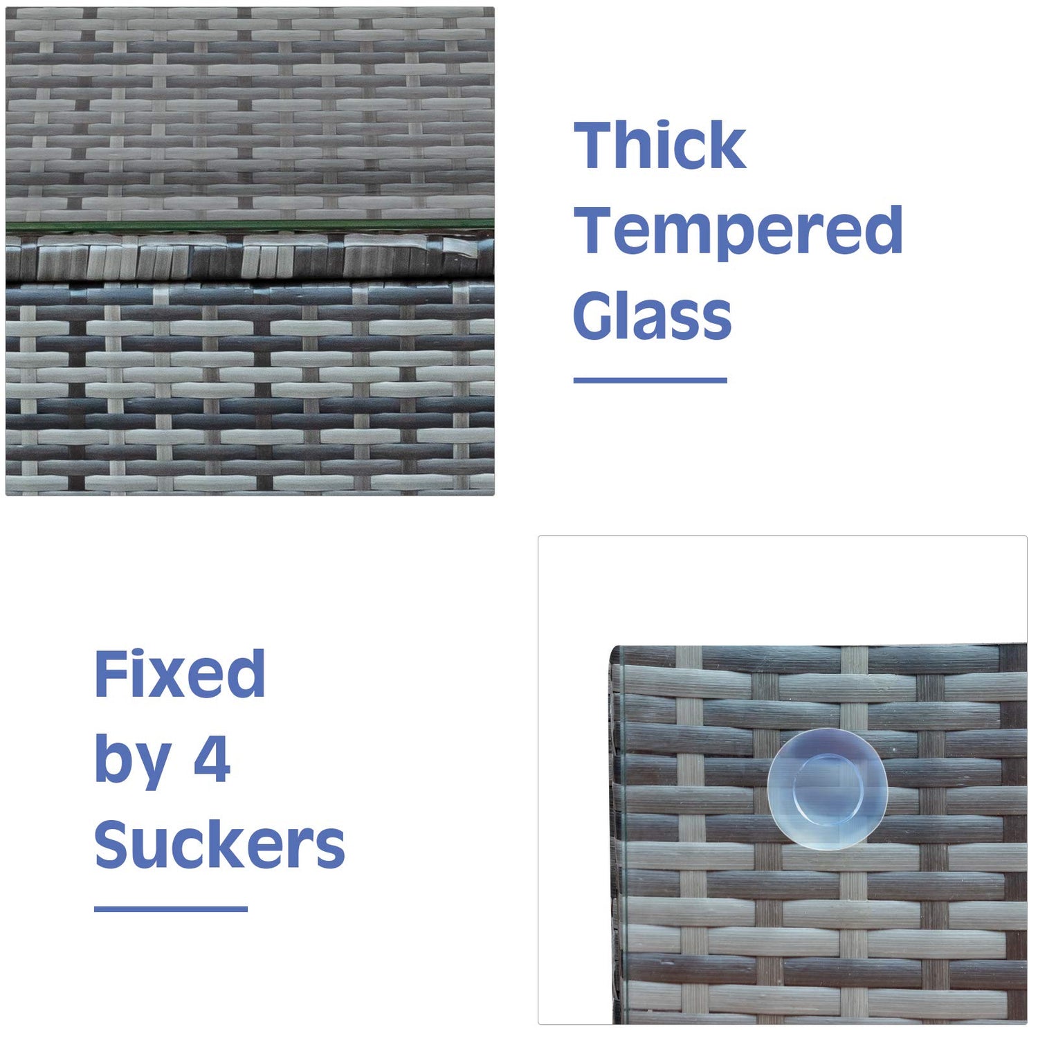 - Tempered Glass Top Table: Comes with a coffee table, the sofa set is great for having snacks or evening drinks. There is a thick tempered glass table on the top which has the function of heat resistance and shock resistance. And the top glass is fixed by four suckers tightly so that the glass won’t move when you are using the table.