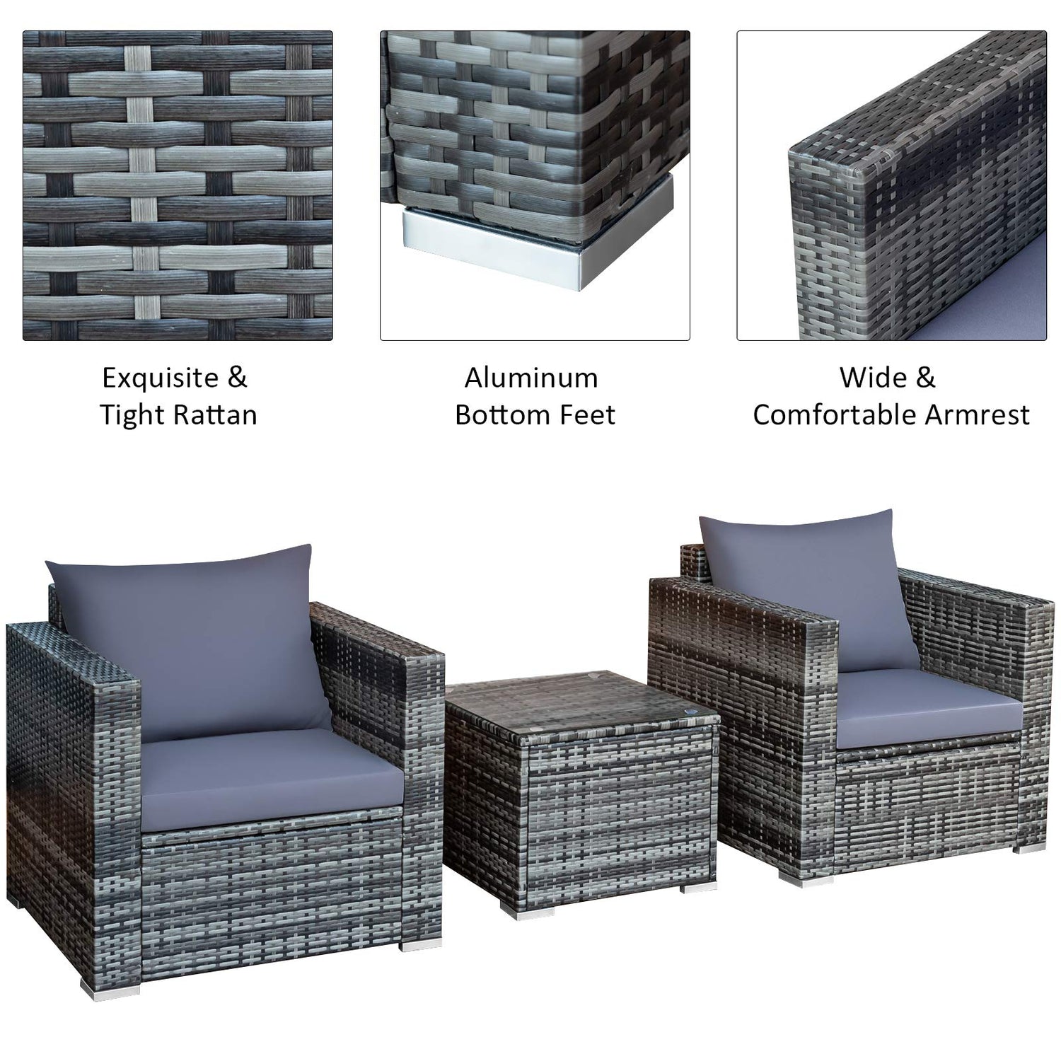 - Steel Frame with Exquisite Rattan: The frame of this patio furniture set is made of steel and wrapped with PE weather-resistant wicker which ensures the stability and durability. And the set can withstand moderate change of weather in outdoor space.