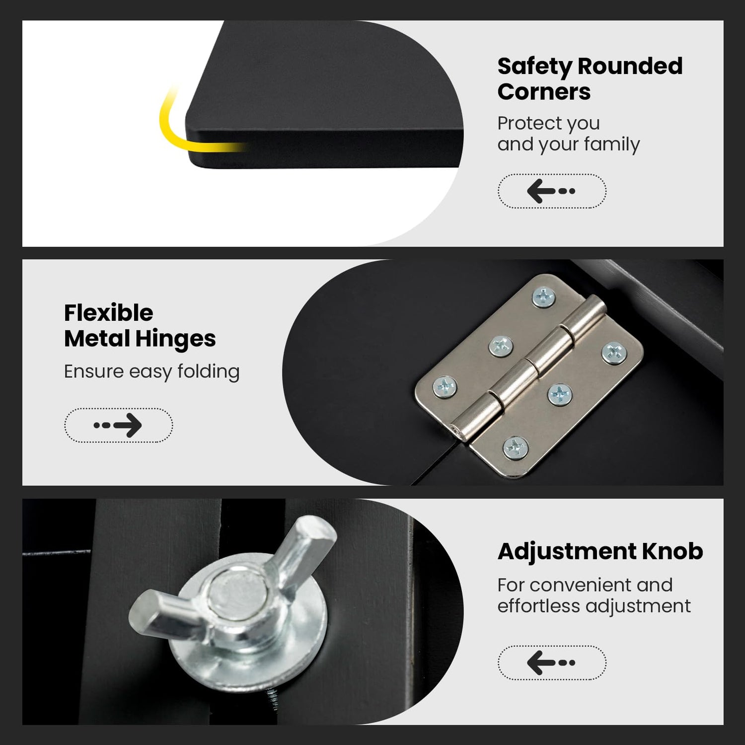 - 【Solid Construction】With a triangular wooden bracket, when mounted on the wall, the table will stand steadily, and the metal hinges and the screw also help fix it. Round edge design avoids accidental injury.
