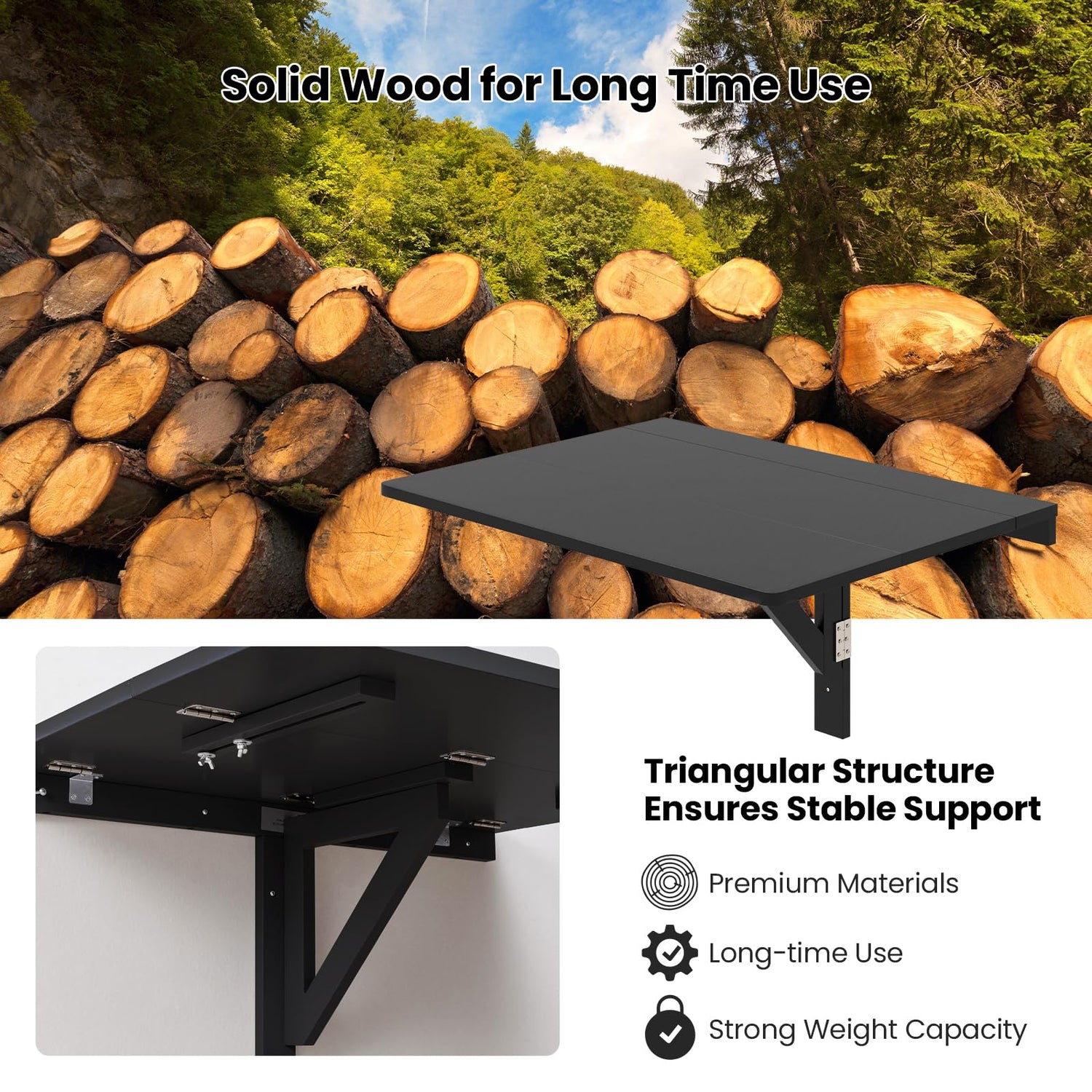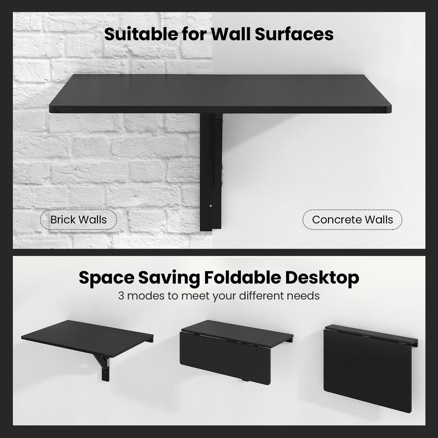 Tangkula 31.5" x 23.5" Wall Mounted Table, Folding Wall Mounted Desk Drop-Leaf Table, Space Saving Fold Down Floating Desk for Study, Bedroom, Bathroom or Balcony (Black)