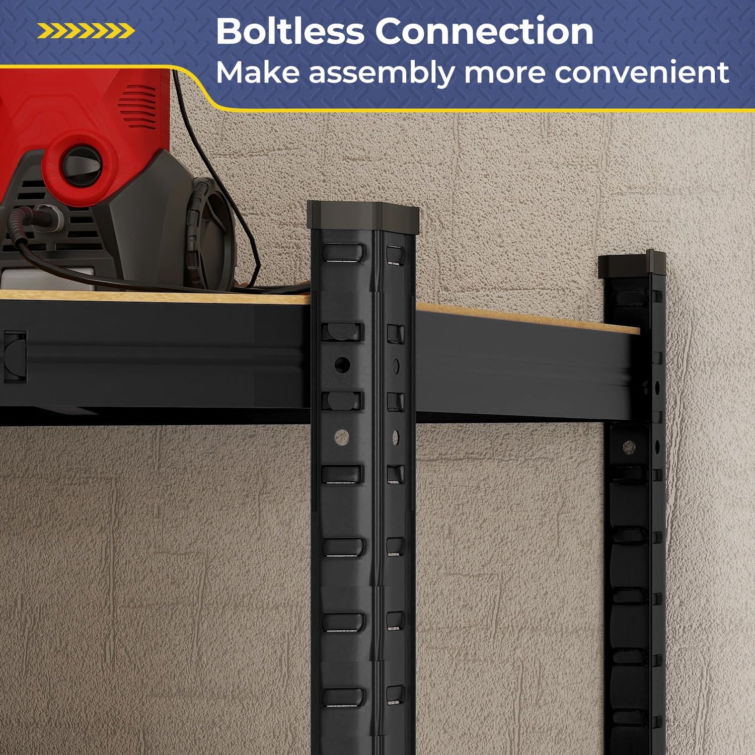- Boltless Connection: With a boltless design, this warehouse shelving offers simple assembly to save time and labor. We recommend using a rubber hammer (not included) for assistance.