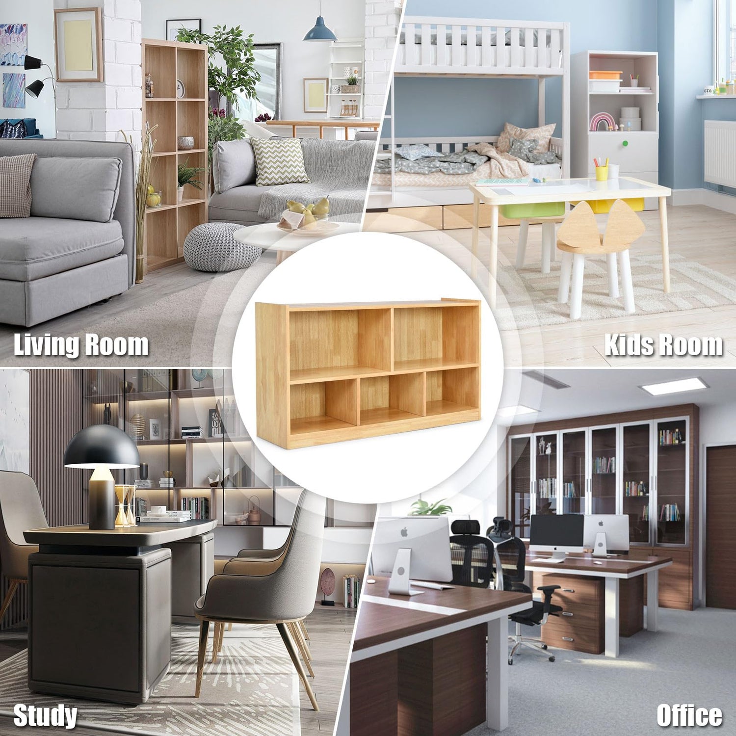 Transform your space with the Tangkula Yellow 5-Cube Wooden Storage Bookcase, where functionality meets style.