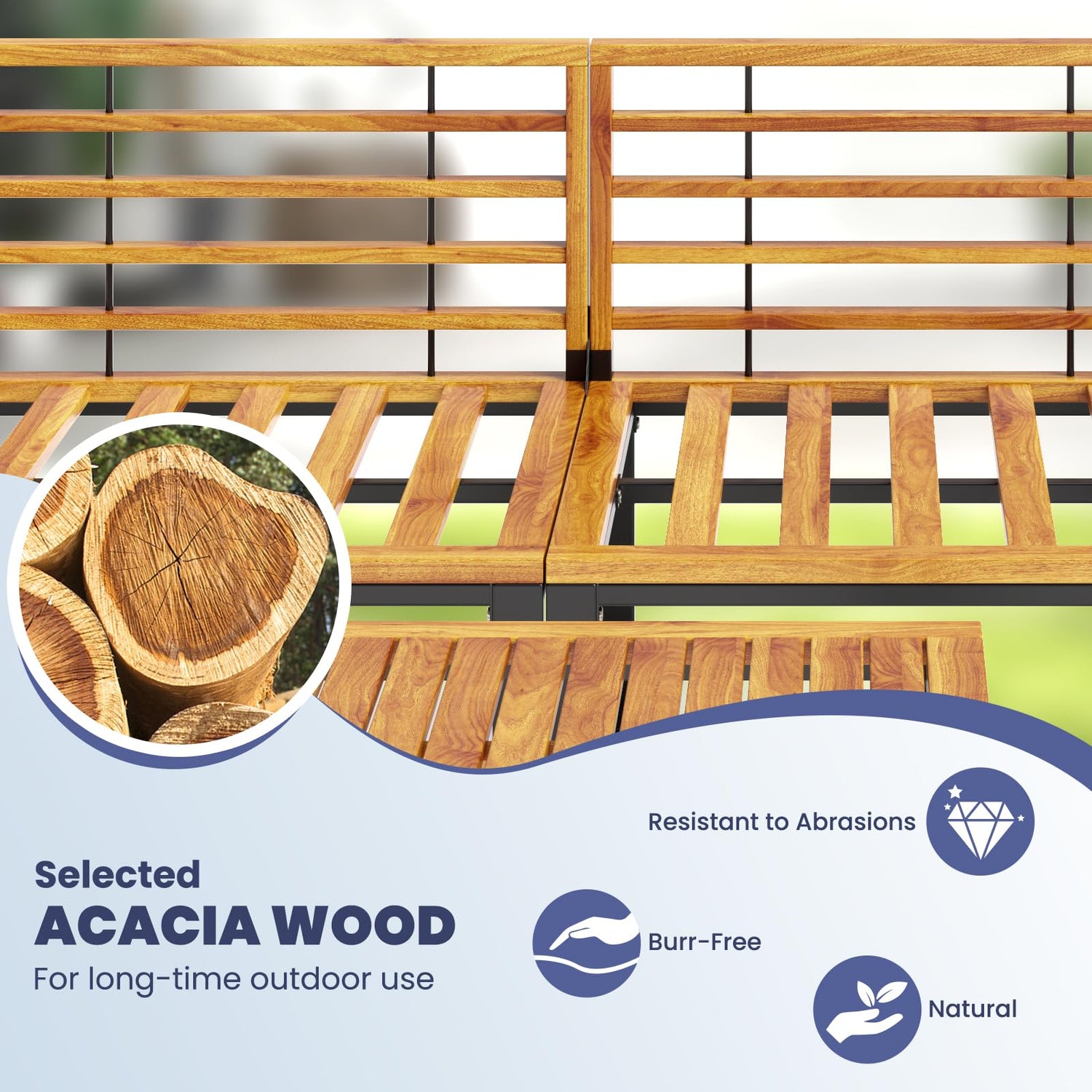 High-grade acacia wood for long-time outdoor use