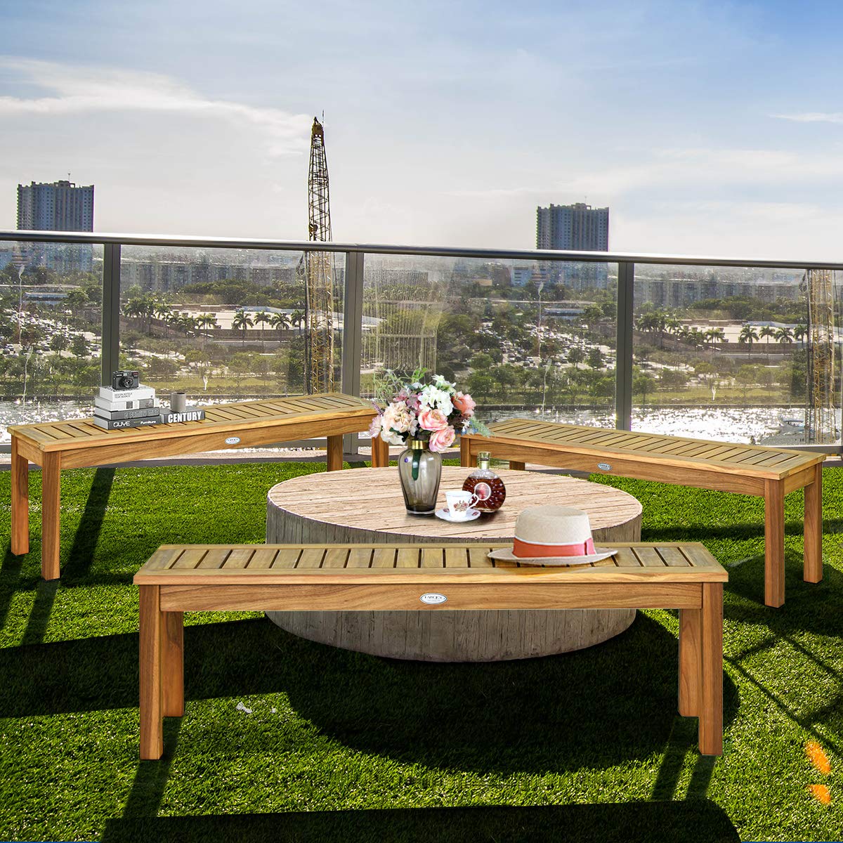 Tangkula 52 Inches Acacia Wood Outdoor Bench, Wood Bench for Dining Room Entryway Poolside Garden, Patio Backless Dining Bench with Slatted Seat, Ideal for Outdoors & Indoors (2, Teak)