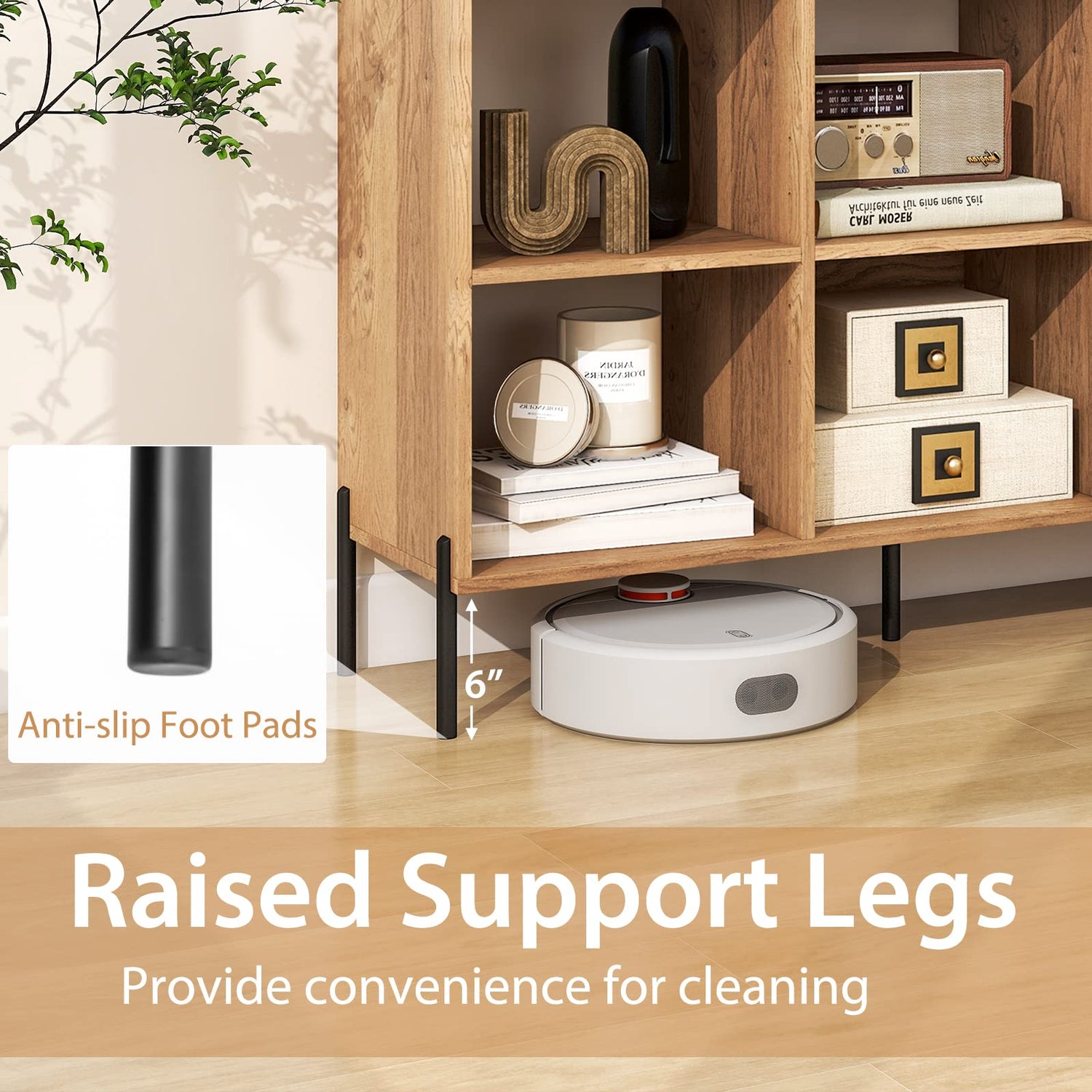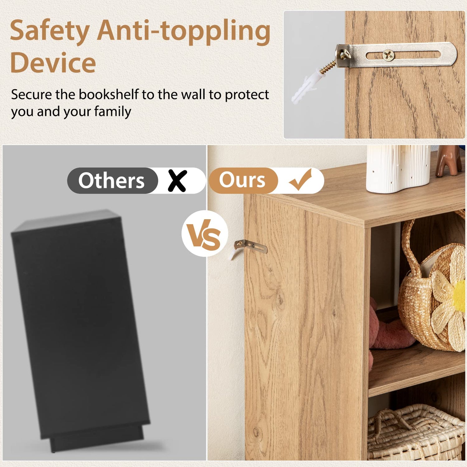 Tangkula 6-Cube Adjustable Bookcase with Metal Legs and Anti-Tip Safety Features in Natural Finish