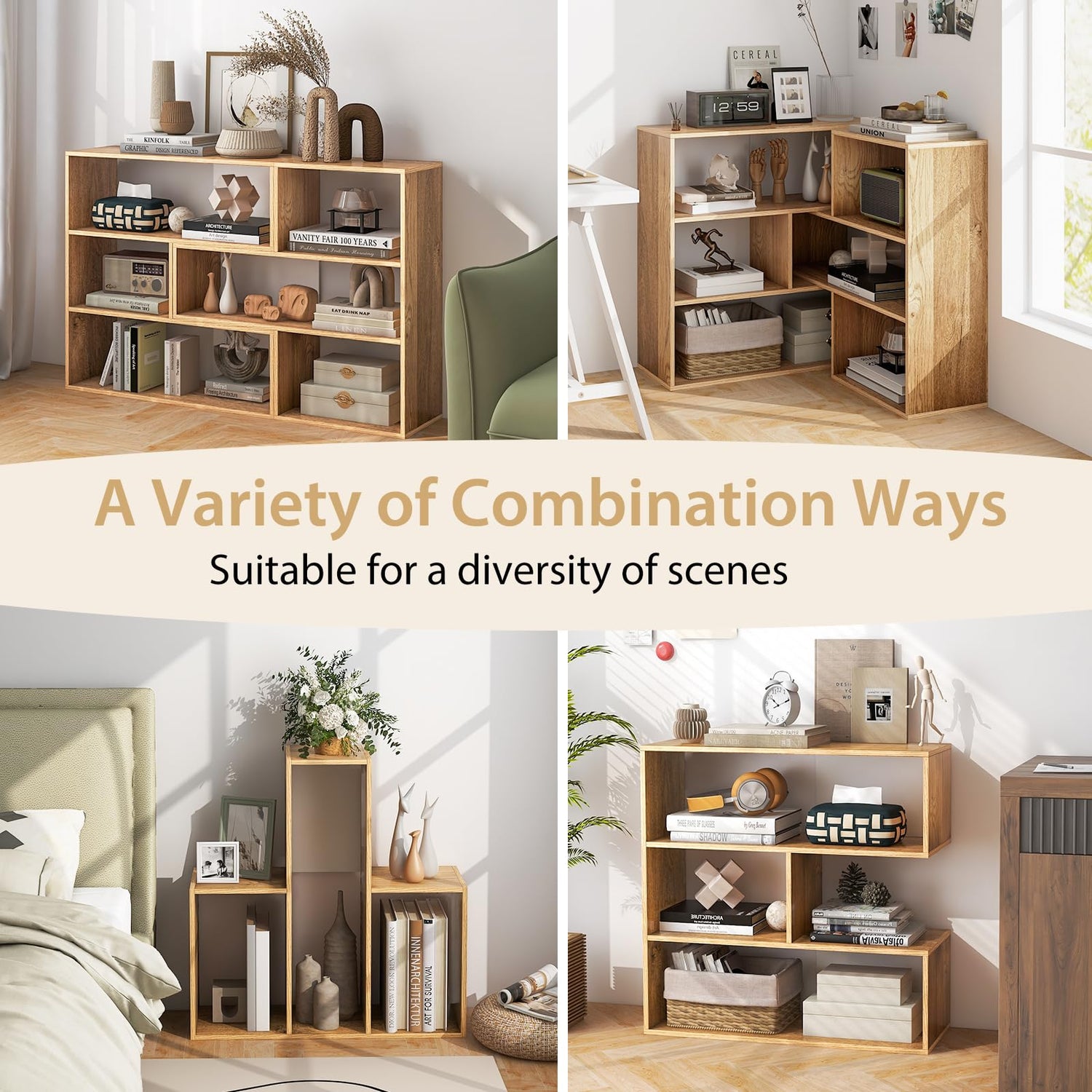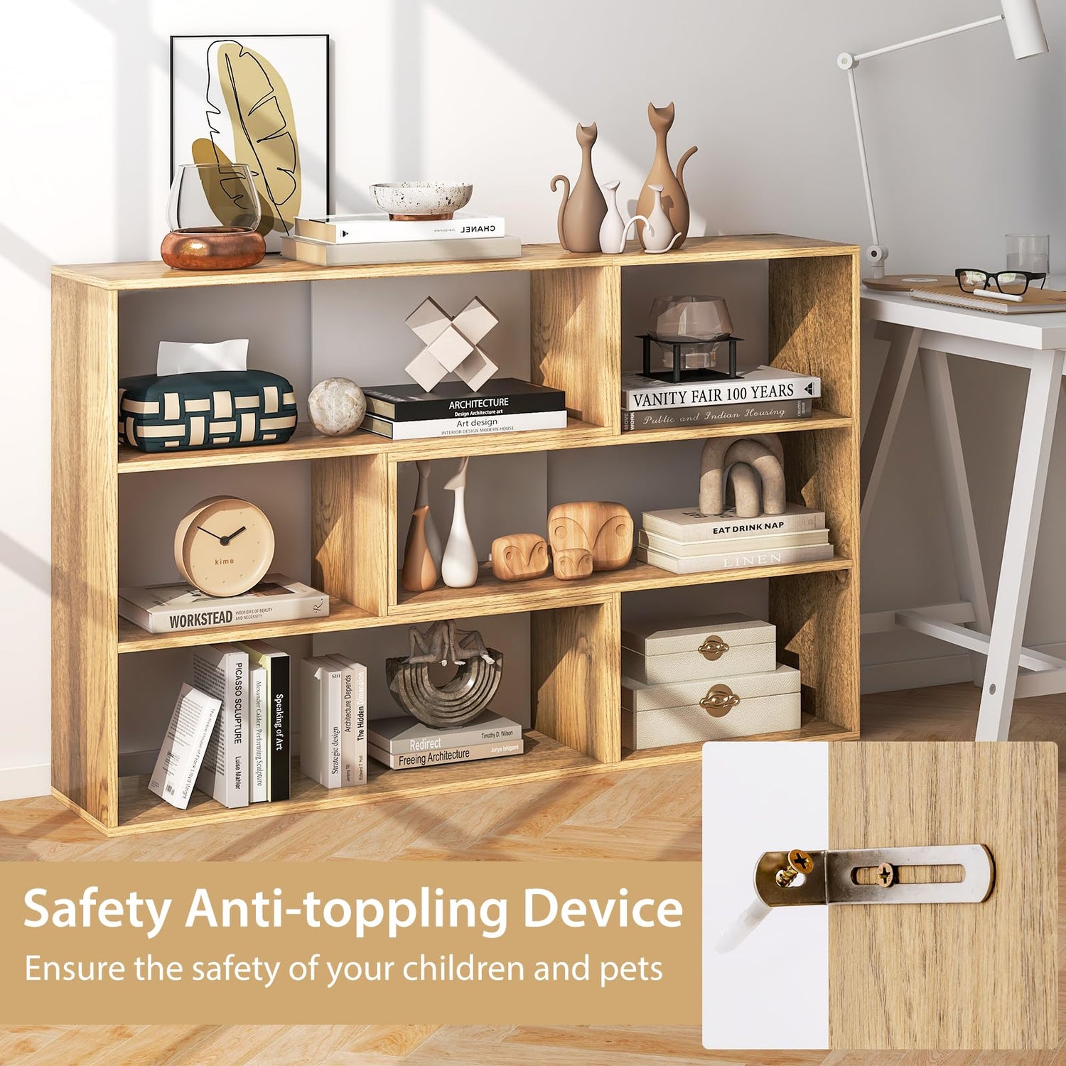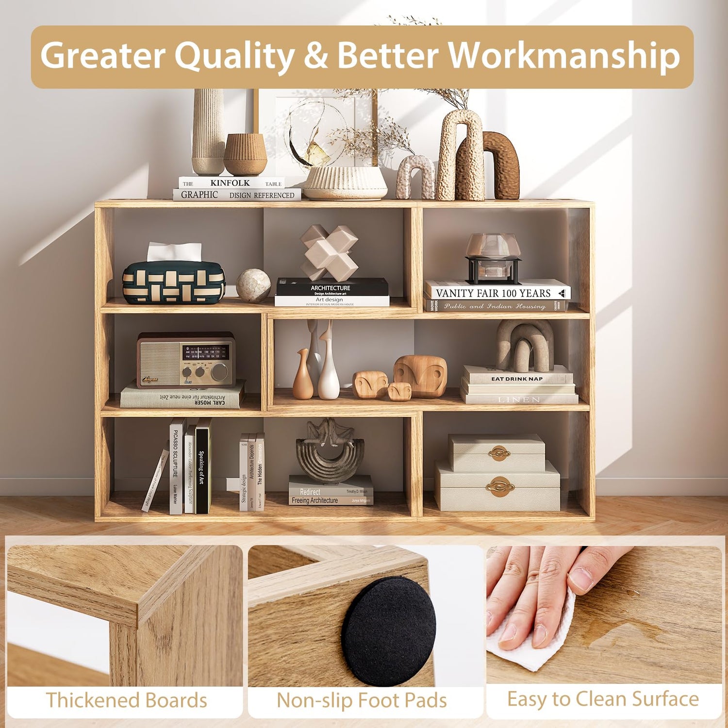 Tangkula 6 Cubes Bookcase, 2-Piece Separable Floor Standing Open Horizontal Bookshelf, Multifunctional Display Storage Shelf for Living Room Study Office (Natural, 6-Cube)