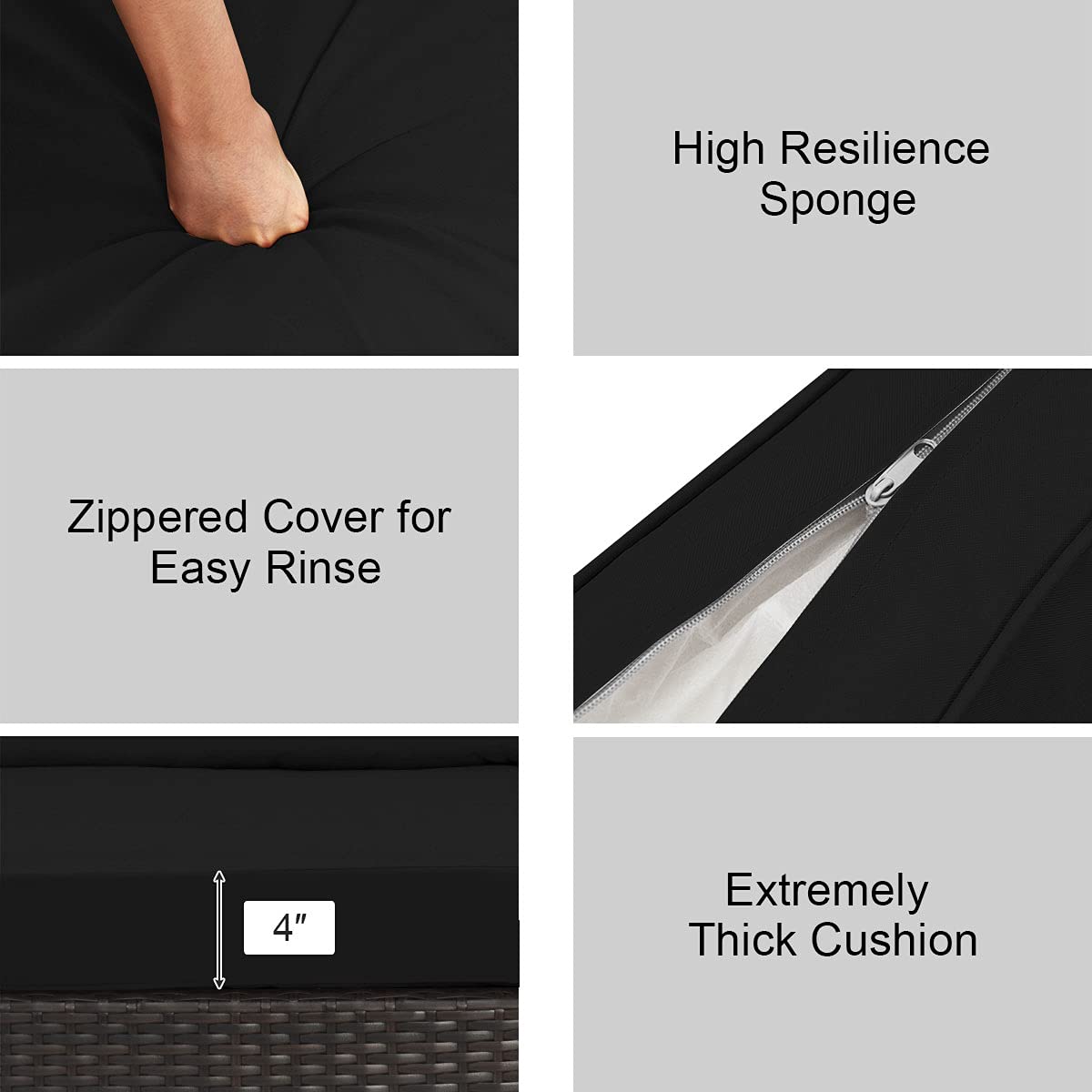 - Superior Comfort Sofa: Our rattan sofa set comes with five padded seat cushions, six back cushions to provide the ultimate comfort to you. The cushion is thick and the sponge in the cushion has high elasticity. You will have a good sleep or rest on our sofa set. And the covers can be removed for easy cleaning.