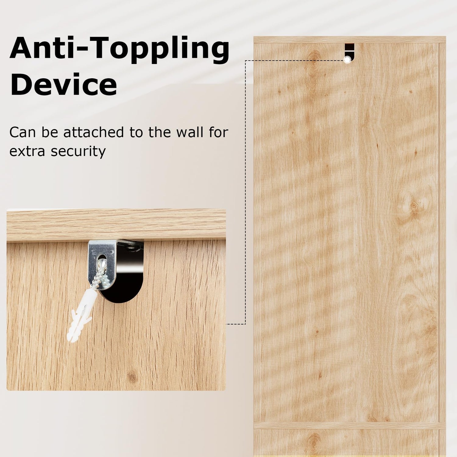 Can be attached to the wall with an included anti-toppling device
