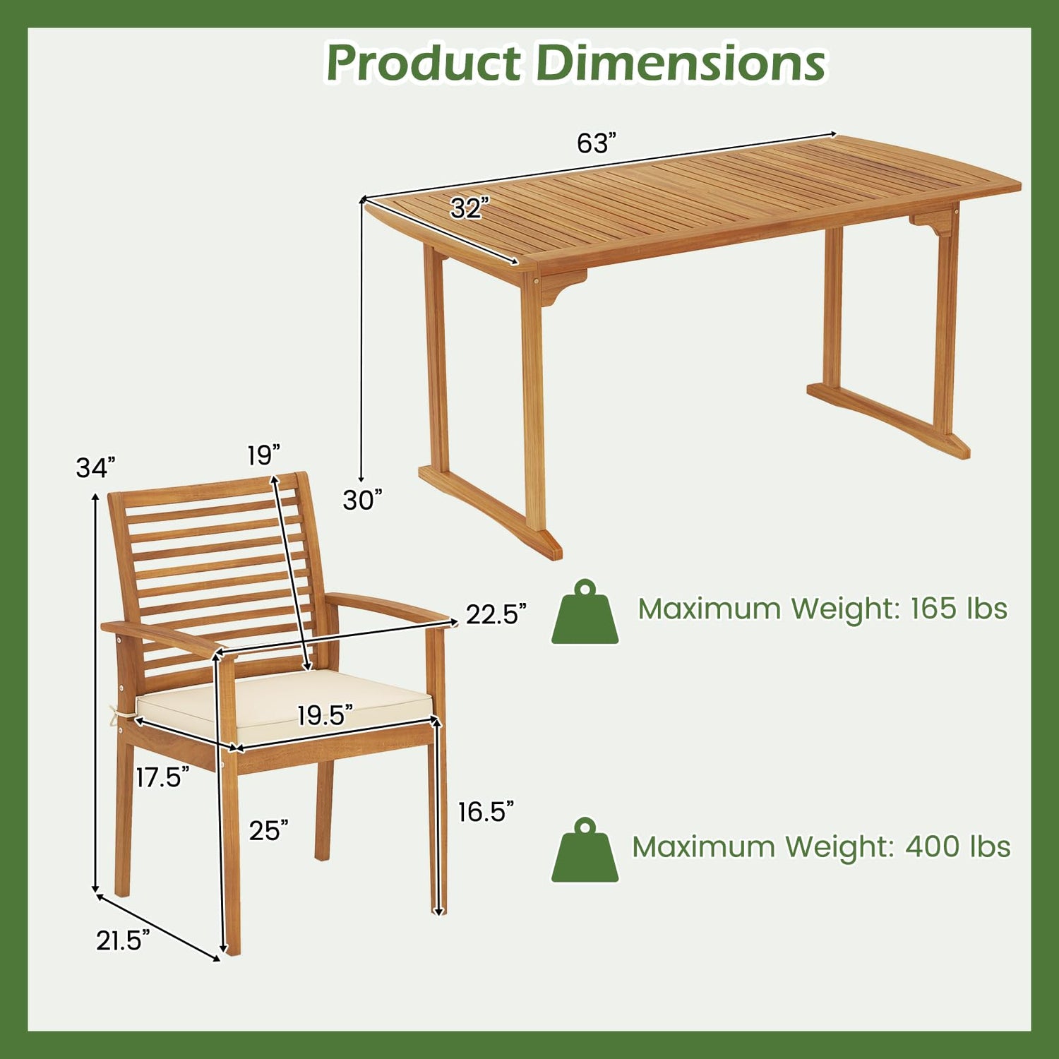 - Acacia Wood Construction: Crafted from solid acacia wood, this 7-piece outdoor dining set ensures longevity and stability. Each chair can support up to 400 lbs/180 kg. Please apply wood polish oil (not included) to the wood surface regularly.
