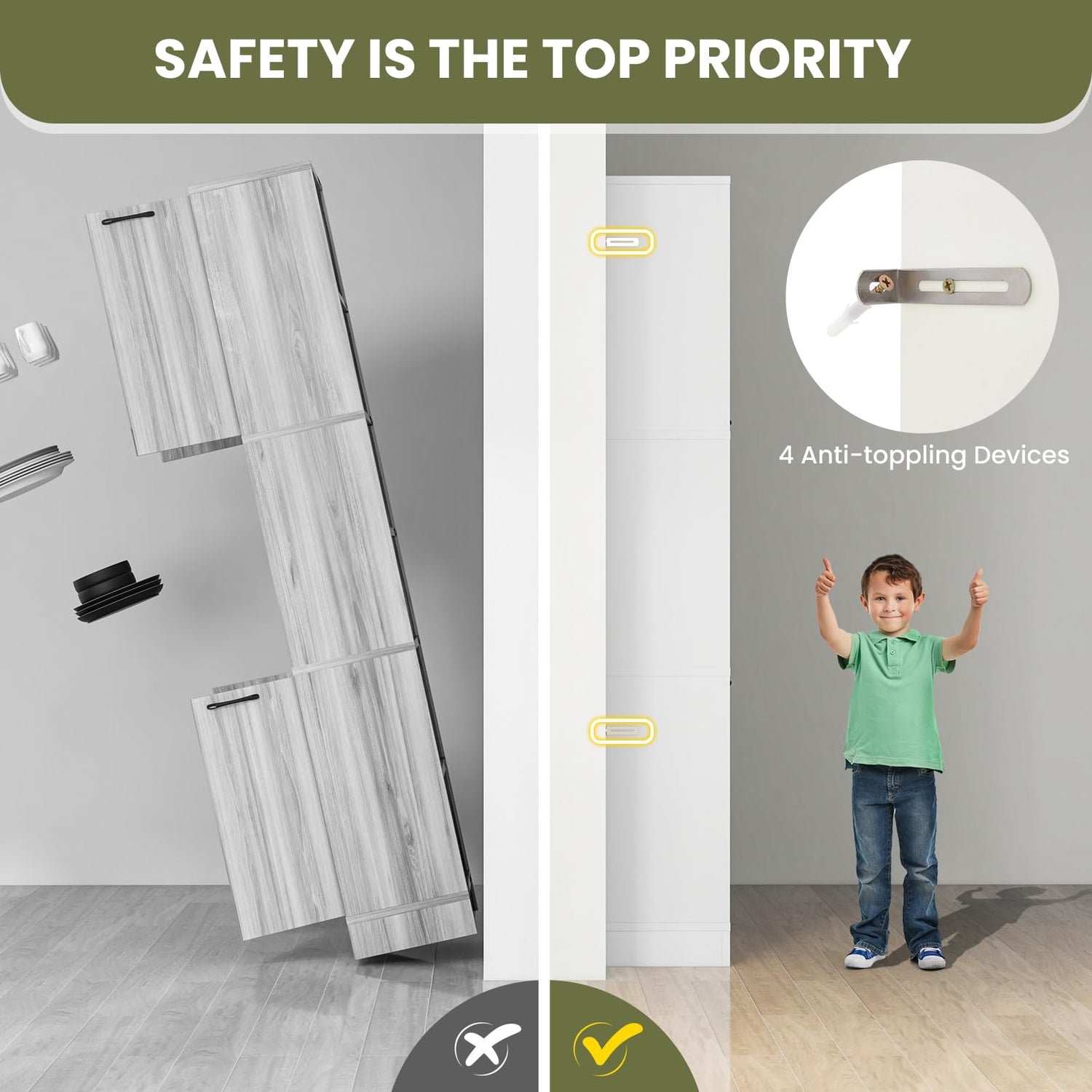 Safety is paramount with the Tangkula cabinet, equipped with four anti-toppling devices that allow for secure anchoring to the wall, providing peace of mind for your family. It also comes with non-slip pads, enhancing stability and safeguarding your floors from unsightly scratches.
