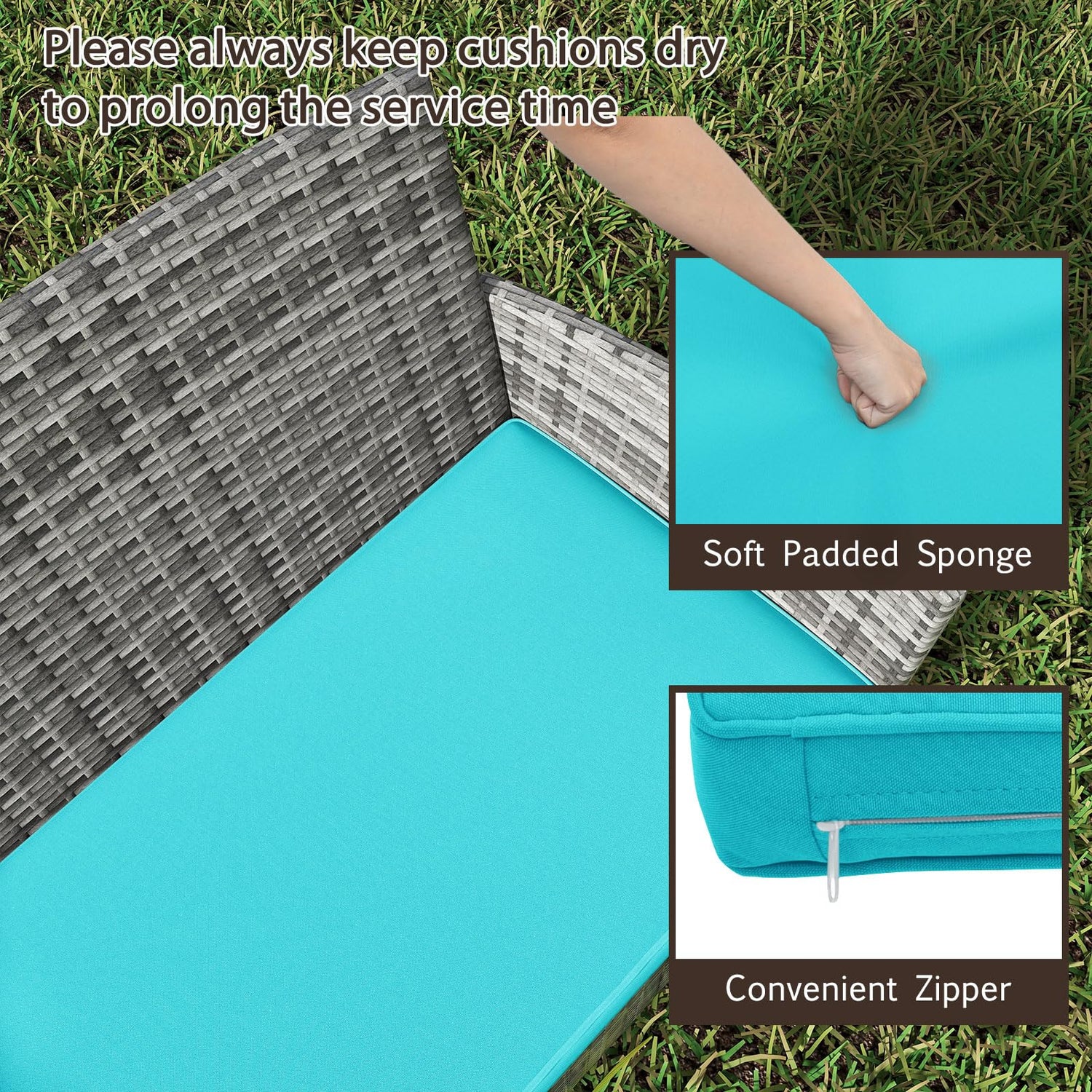 Tangkula 8 Pieces Patio Rattan Conversation Set, Outdoor Wicker Furniture Set with Cushioned Chair, Loveseat & Tempered Glass Table, Outside Sectional Sofa Set for Backyard (G-Turquoise,2)